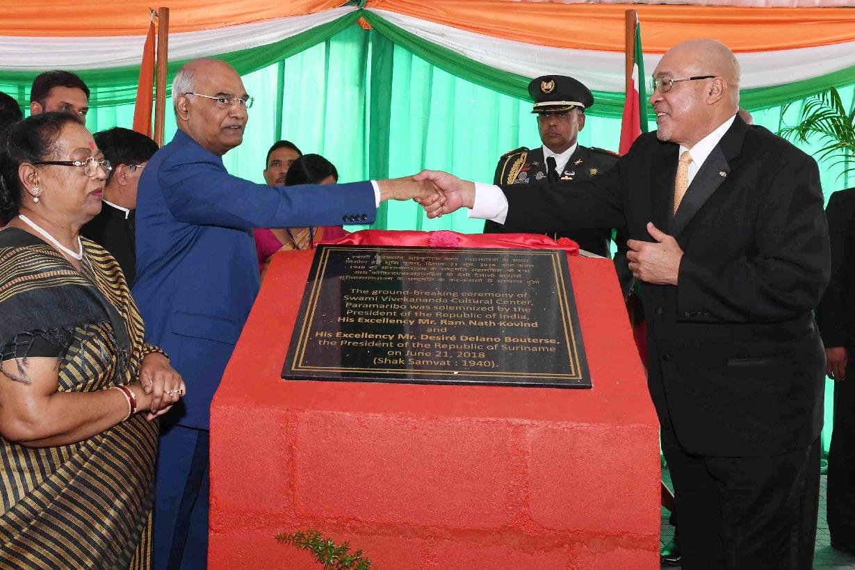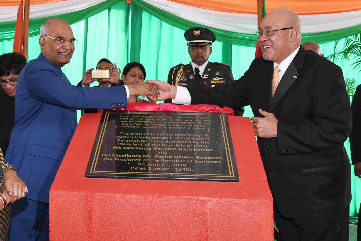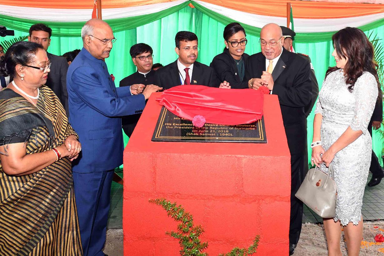 | Caption: | The President of India, Shri Ram Nath Kovind along with the President of the Republic of Suriname, H.E. Mr. Desire Delano Bouterse during the ground breaking ceremony of proposed Indian Cultural Centre (ICC) site, at Paramaribo, in Suriname on June 21, 2018. |