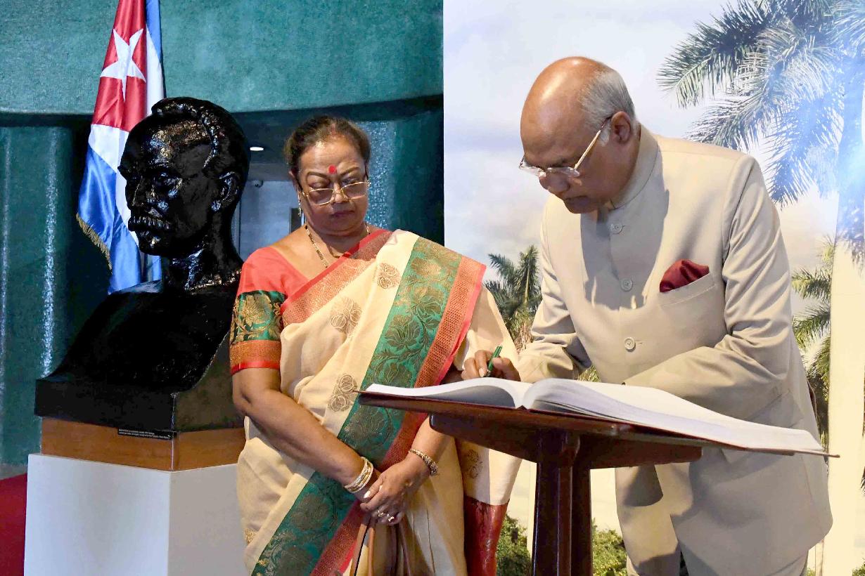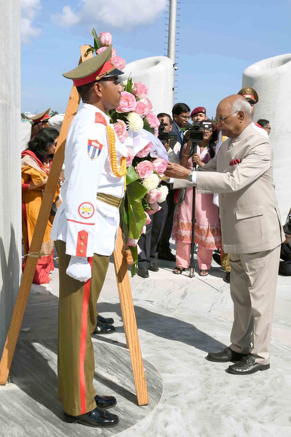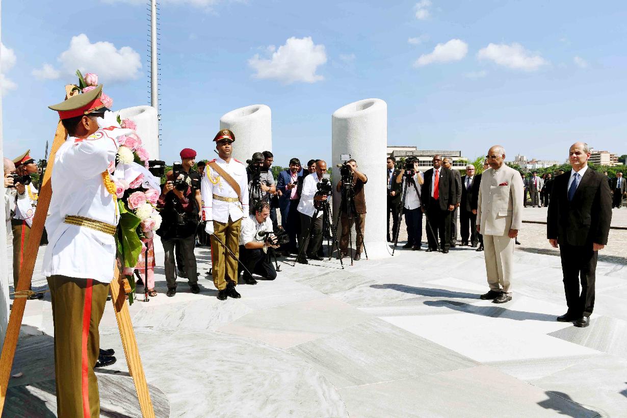 | Caption: | The President of India, Shri Ram Nath Kovind laying wreath at the monument of al Heroe Nacional Jose Marti at Revolution Square, Havana, in Cuba on June 22, 2018. |