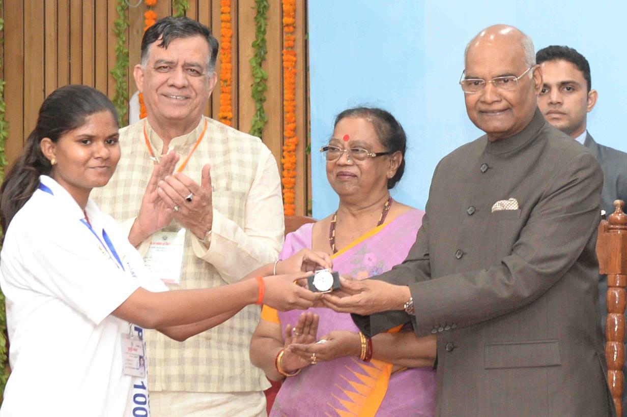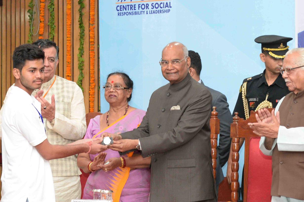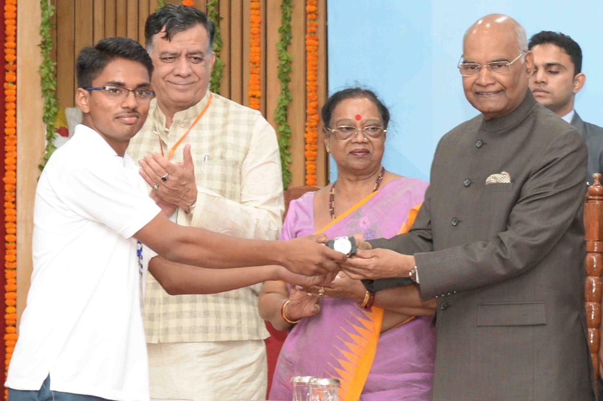 | Caption: | The President of India, Shri Ram Nath Kovind meeting with the students of CSRL Super 30 (GAIL Utkarsh) who have qualified IIT, NIT at Outreach Auditorium, IIT Kanpur, in Uttar Pradesh on June 28, 2018. |