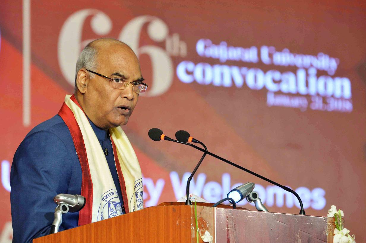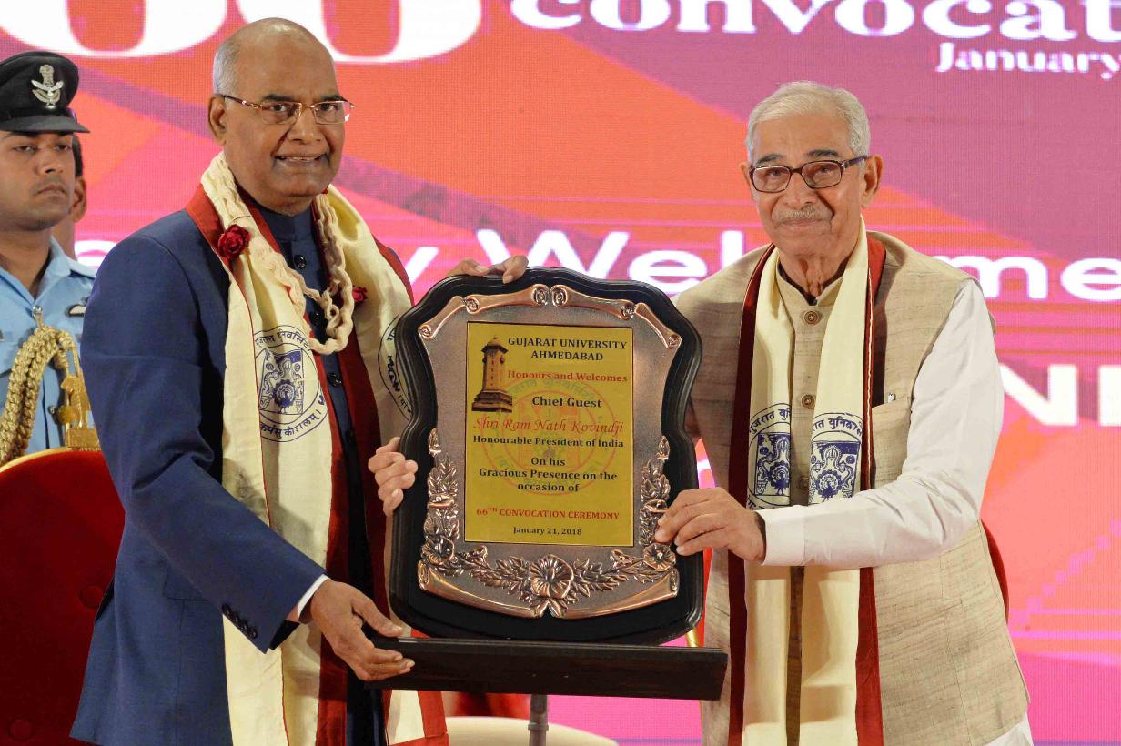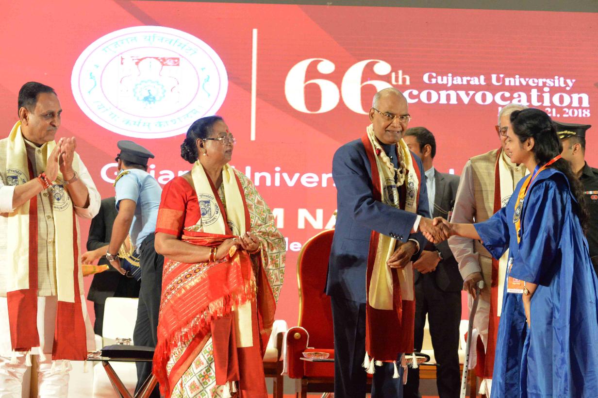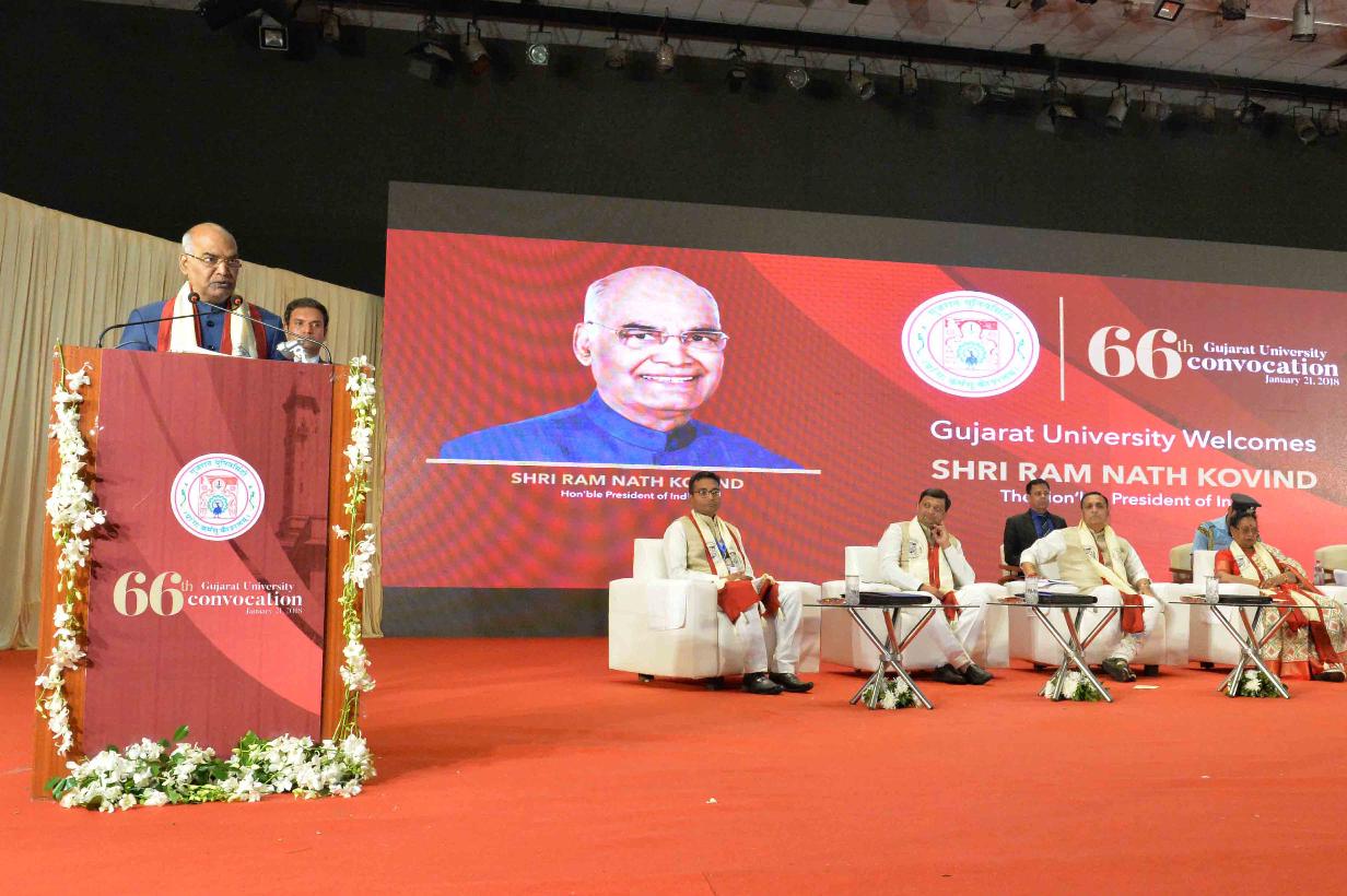 | Caption: | The President of India, Shri Ram Nath Kovind addressing the 66th Convocation of Gujarat University and presenting the Gold Medal to students, at Ahmedabad, in Gujarat on January 21, 2018. |