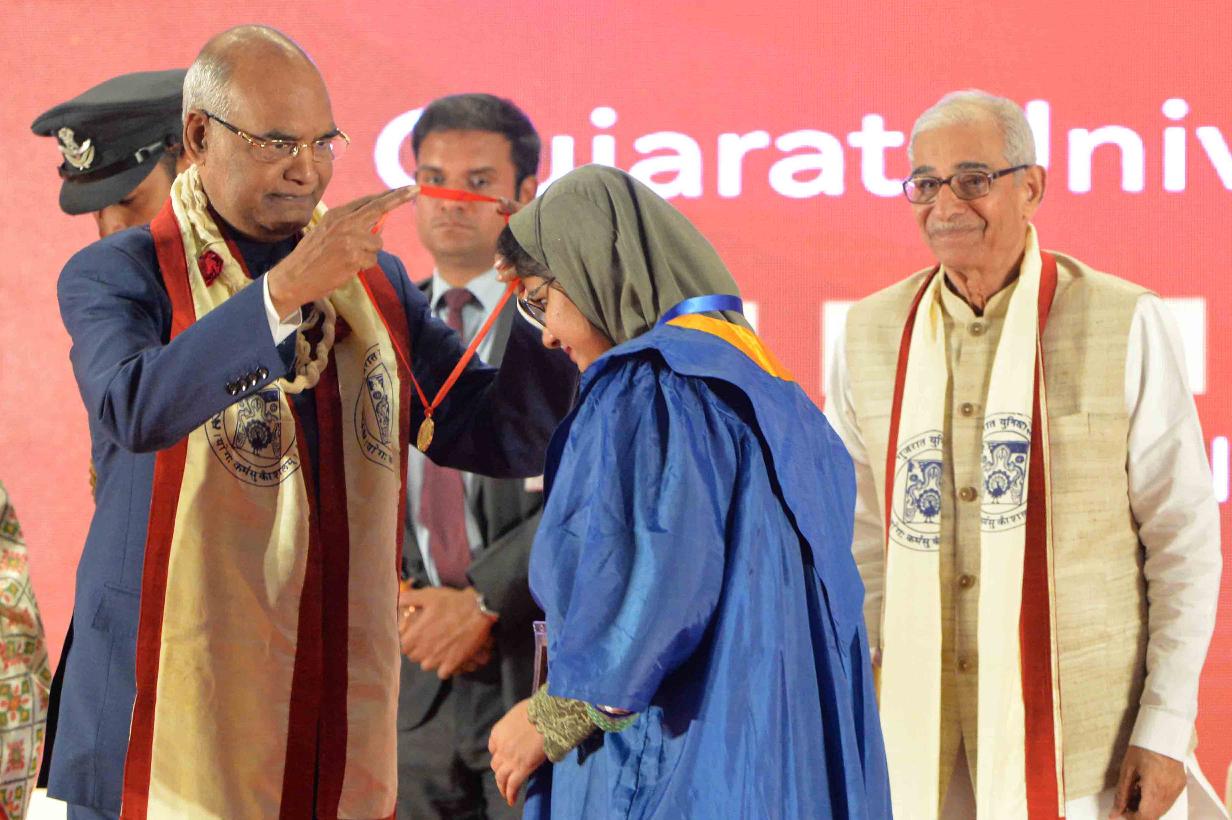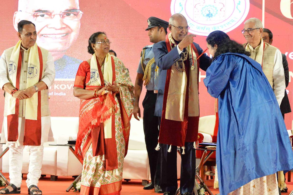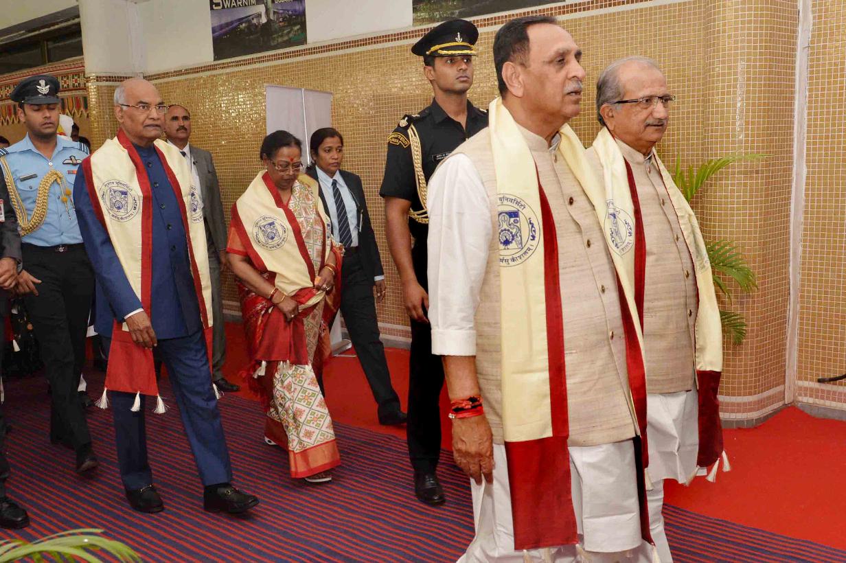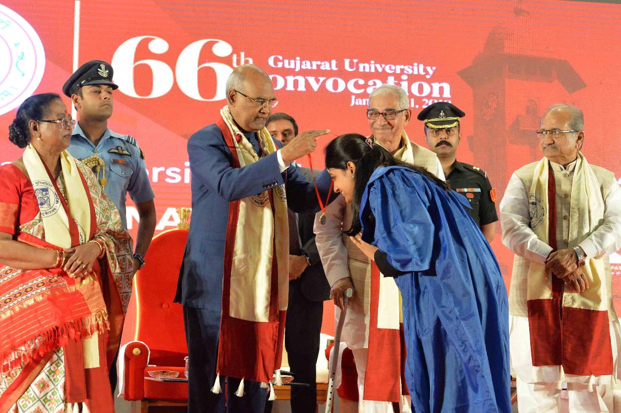 | Caption: | The President of India, Shri Ram Nath Kovind addressing the 66th Convocation of Gujarat University and presenting the Gold Medal to students, at Ahmedabad, in Gujarat on January 21, 2018. |
