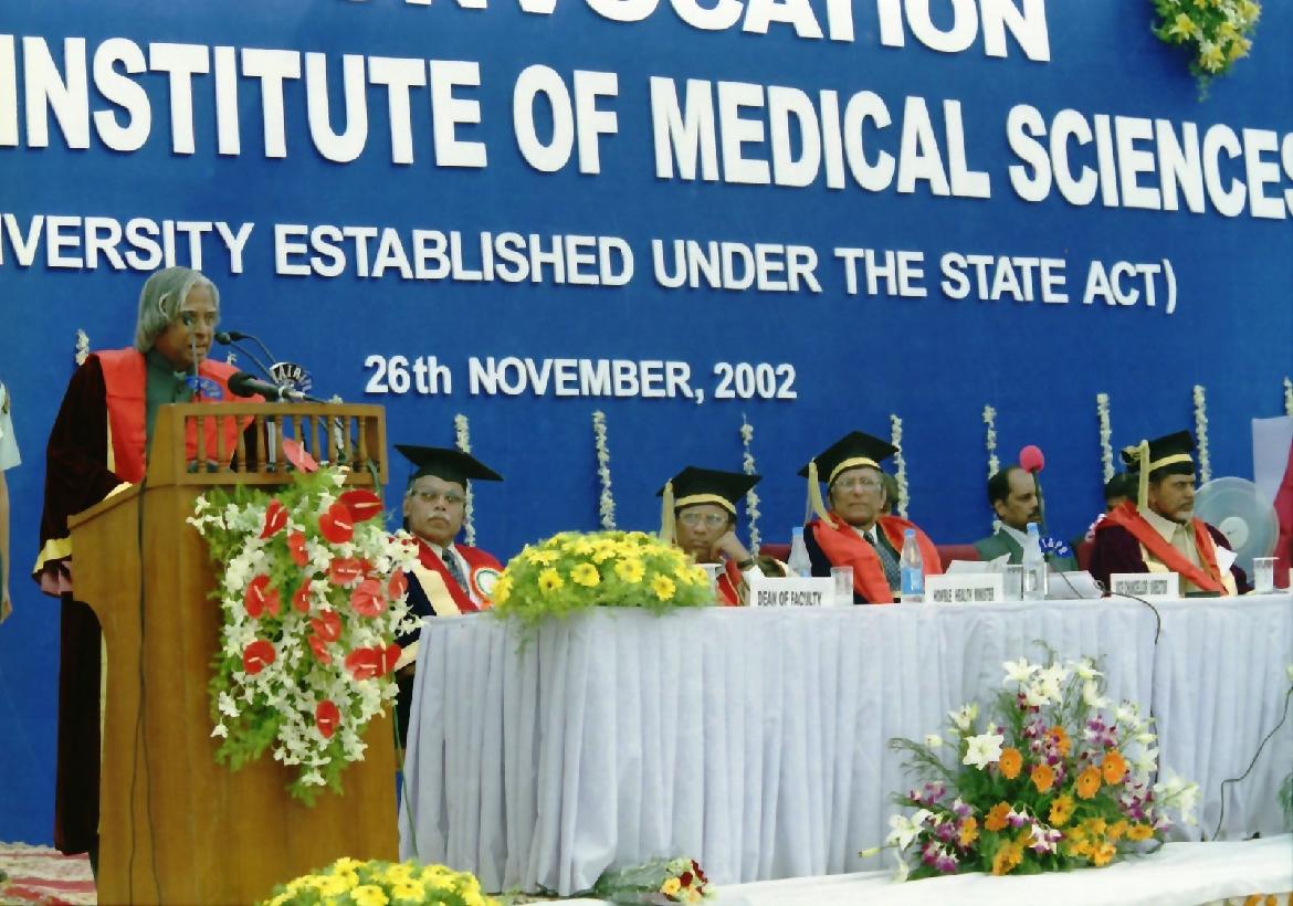 | Caption: | The President of India, Dr A P J Abdul Kalam at the 3rd Convocation of Nizam's Institute of Medical Sciences at Hyderabad in Andhra Pradesh on Nov 26, 2002 |