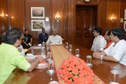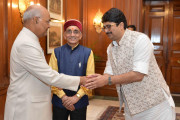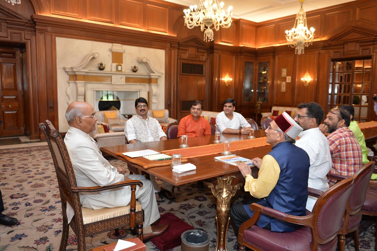 | Caption: | Shri Ashish Gautam, Shri Raghuraj Pratap Singh, Dr. Raja Ram Yadav with others from Divya Prem Sewa Mission, Haridwar meeting with the President of India, Shri Ram Nath Kovind, at Rashtrapati Bhavan on August 08, 2018. |