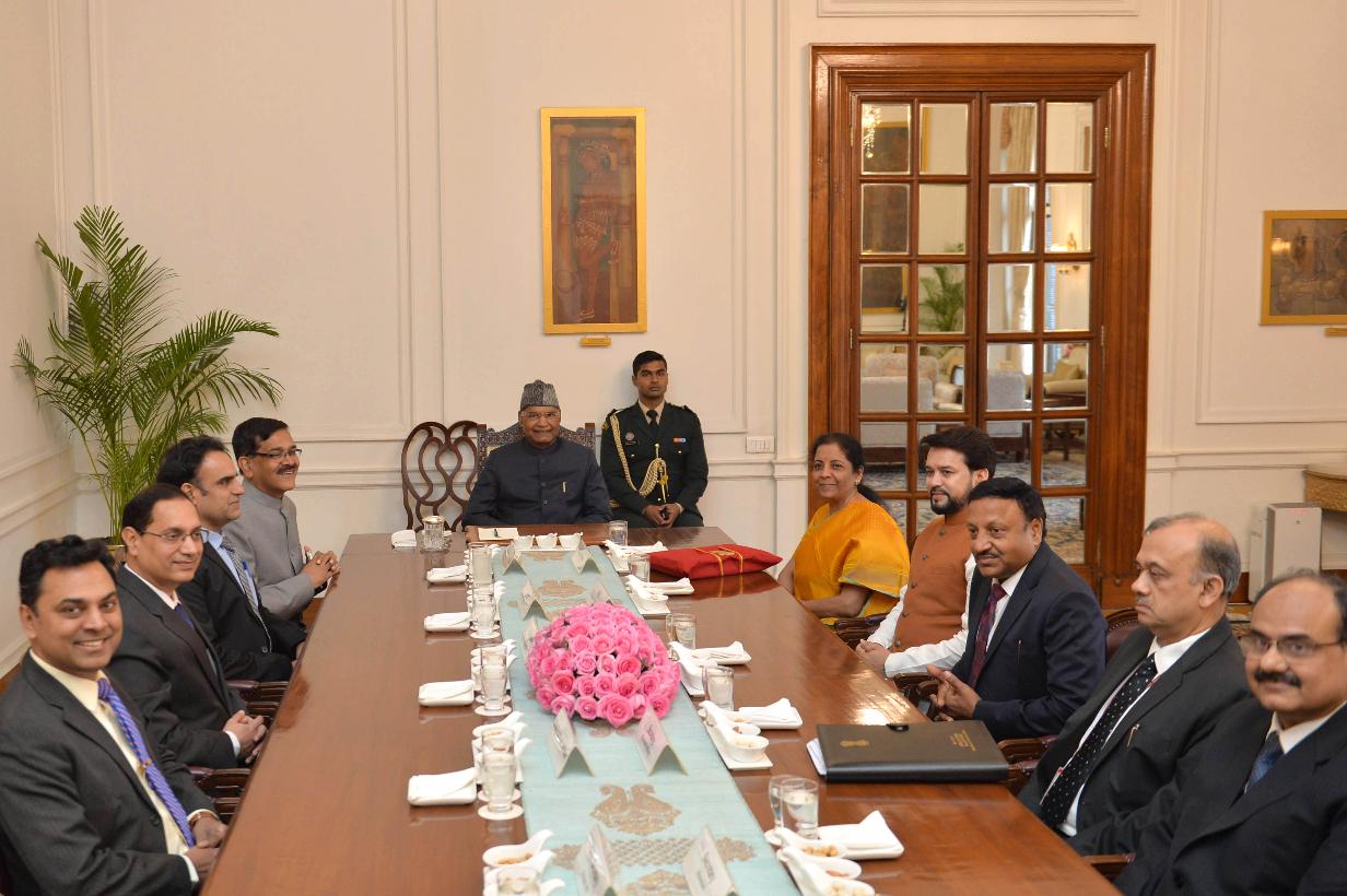 | Caption: | As per Tradition, the Finance Minister, Smt. Nirmala Sitharaman, the Minister of State for Finance, Shri Anurag Singh Thakur along with Senior Officers of the Finance Ministry calling on the President of India, Shri Ram Nath Kovind, before presenting the Union Budget, at Rashtrapati Bhavan on February 01, 2020. |