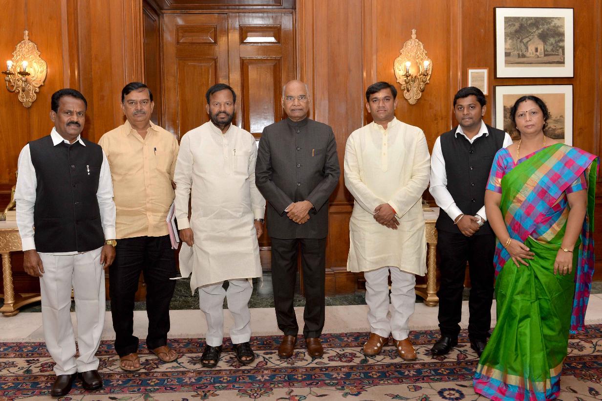 | Caption: | Shri D.S. Veeraiah, Ex-MLC, Karnataka alongwith Shri Shivamurthy Naik, Ex-Minister, Karnataka and others meeting with the President of India, Shri Ram Nath Kovind, at Rashtrapati Bhavan on September 24, 2018. |