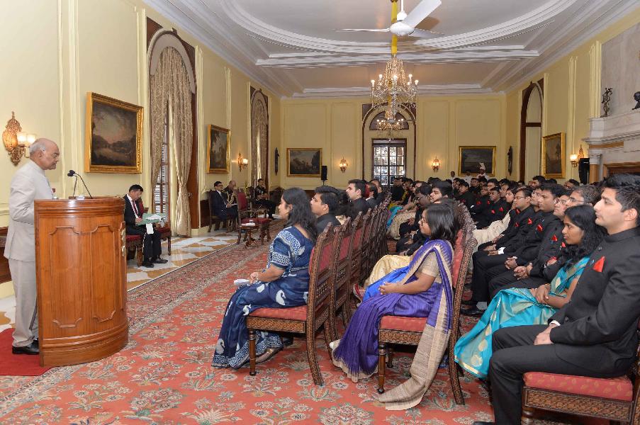 | Caption: | The President of India, Shri Ram Nath Kovind meeting with the Officer Trainees of Indian Audit & Accounts Service of 2016 & 2017 Batches from National Academy of Audit & Accounts, Shimla, Probationers of Indian Trade Service from Indian Institute of Foreign Trade and Officer Trainees of Indian Information Service from Indian Institute of Mass Communication, at Rashtrapati Bhavan on September 17, 2018. |