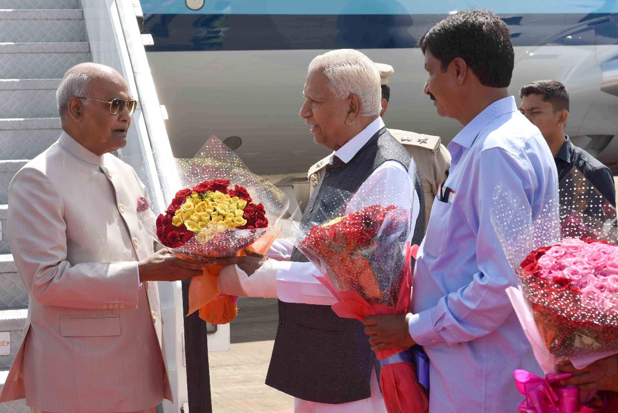 | Caption: | The President of India, Shri Ram Nath Kovind being received by the Karnataka Governor, Shri Vajubhai Rudabhai Vala, at Belagavi Airport, in Karnataka on September 15, 2018. |