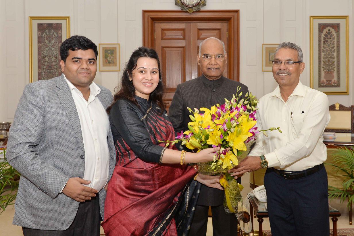 | Caption: | Shri D.S. Maallah, Joint Secretary, Lok Sabha Secretariat alongwith Shri Bhasker Prakash, President, Football for Nation and Mrs. Priyanka Prakash Kothari, Chairperson, Nisha Foundation meeting with the President of India, Shri Ram Nath Kovind, at Rashtrapati Bhavan on September 24, 2018. |