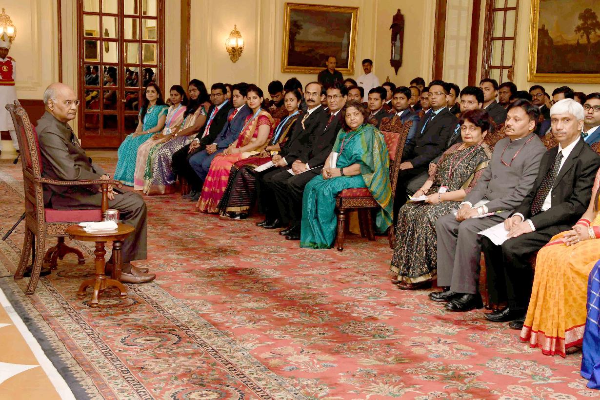 | Caption: | The President of India, Shri Ram Nath Kovind meeting with the General Duty Medical Officers (GDMOs) of the Central Health Service (CHS) attending the 3rd Foundation Training Programme at National Institute of Health and Family Welfare (NIHFW), at Rashtrapati Bhavan on September 19, 2018. |
