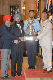 | Caption: | The President of India, Shri Ram Nath Kovind presenting the Maulana Abul Kalam Azad Trophy 2017-18 to Guru Nanak Dev University, Amritsar, at the National Sports & Adventure Awards function, at Rashtrapati Bhavan on September 25, 2018. |