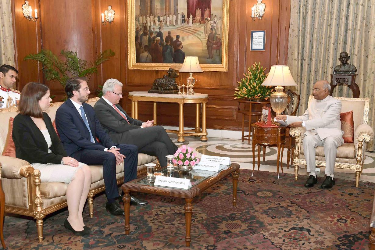 | Caption: | The Ambassador-designate of the Grand Duchy of Luxembourg, H.E. Mr. Jean Claude Kugener presenting his credentials to the President of India, Shri Ram Nath Kovind, at Rashtrapati Bhavan on September 20, 2018. |