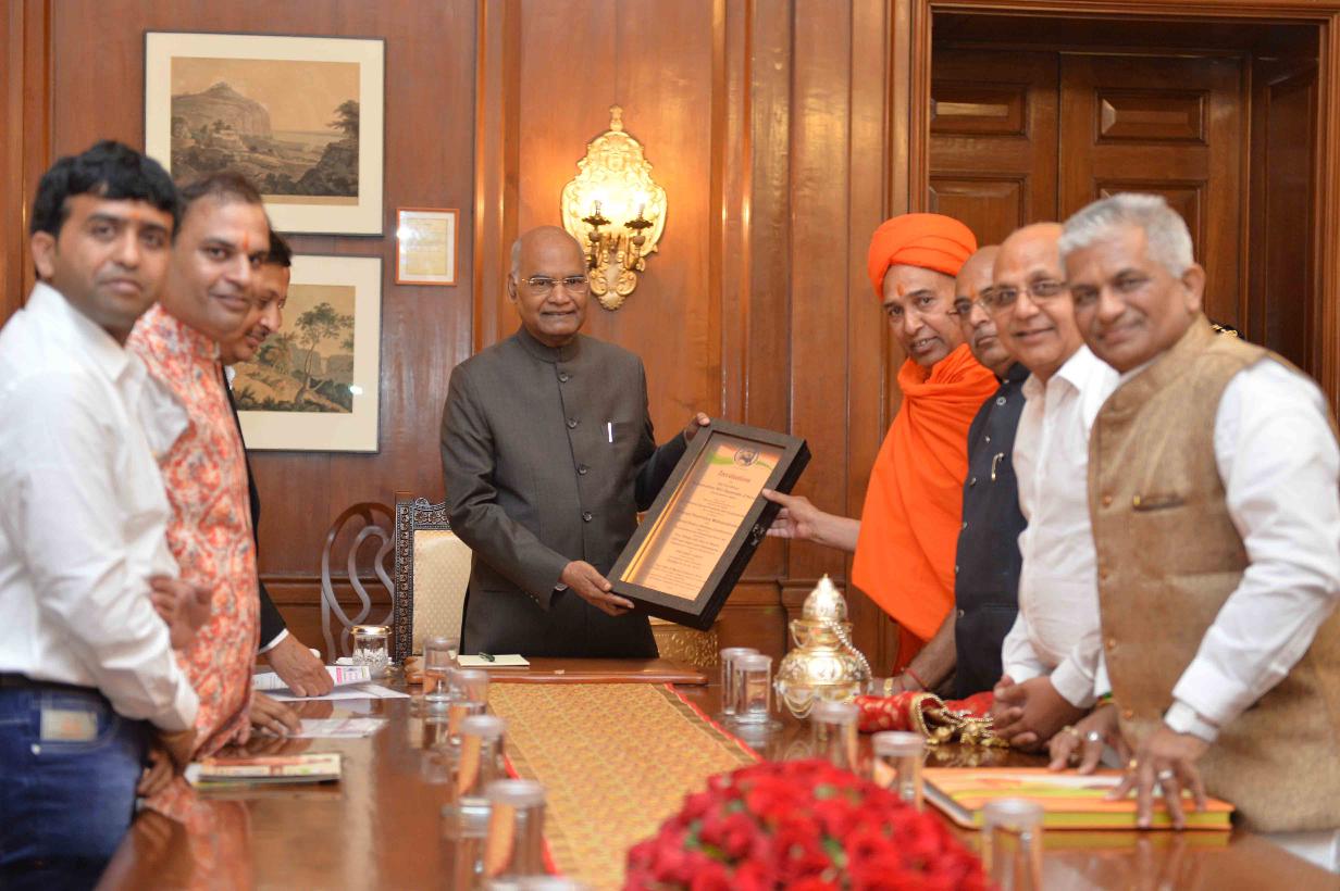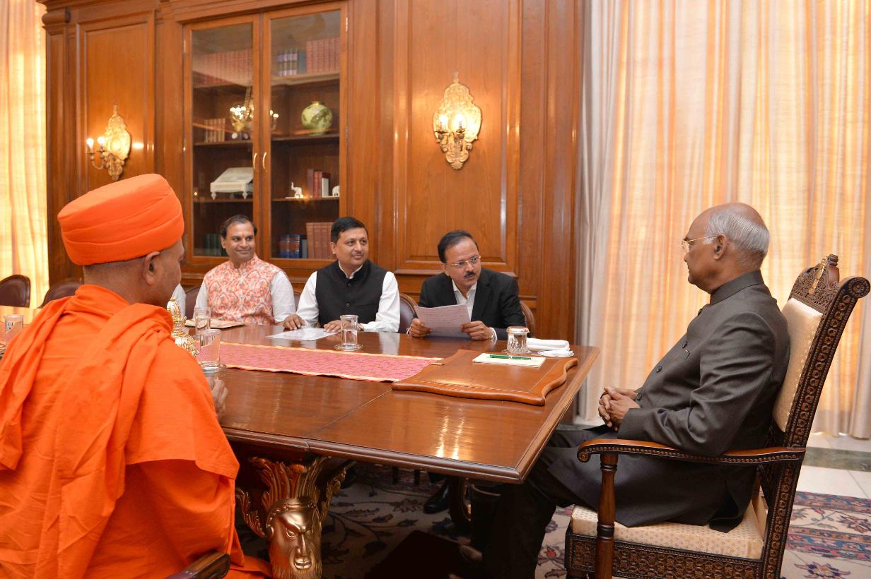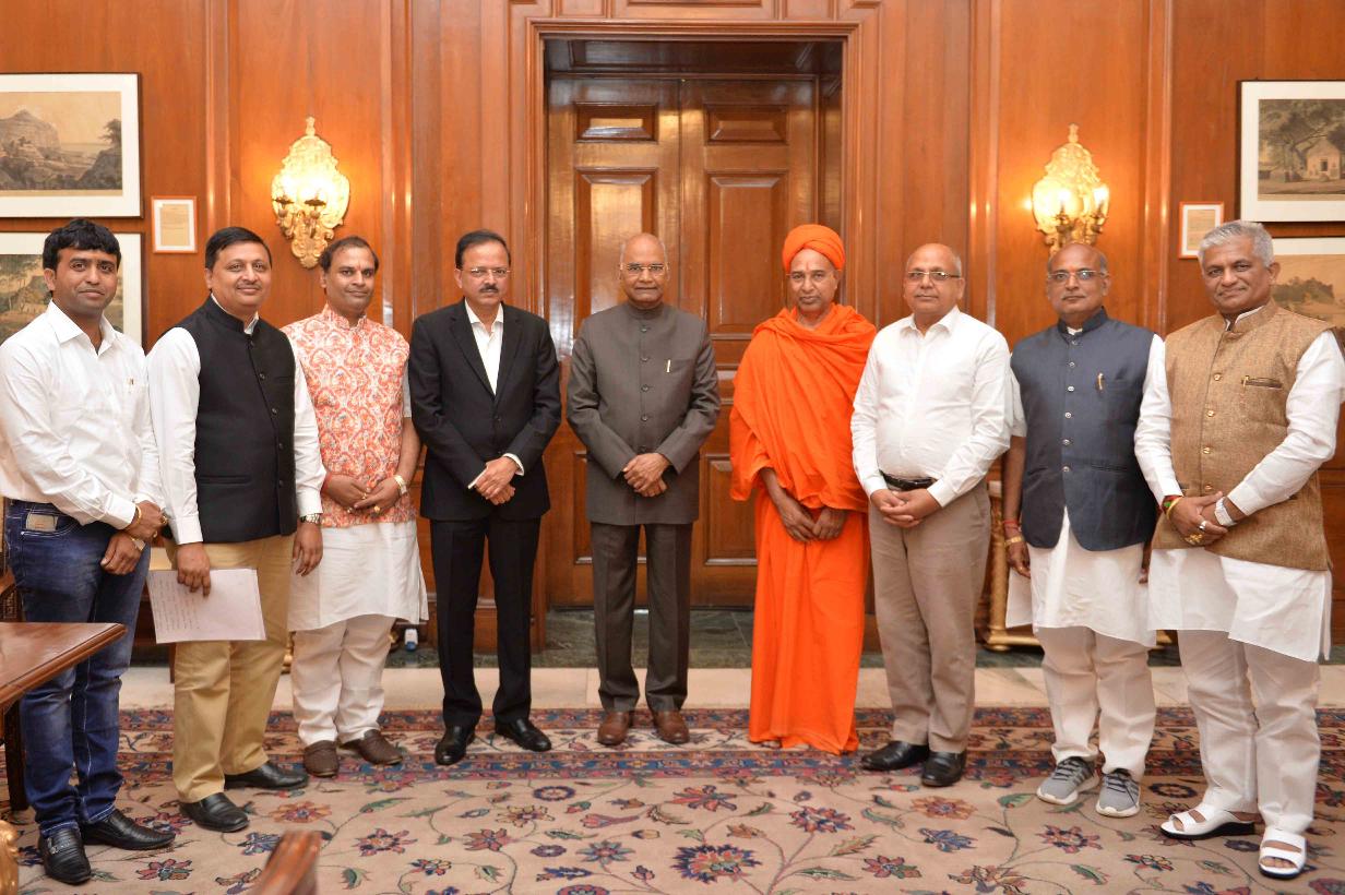 | Caption: | The Minister of State for Defence, Dr. Subhash Bhamre alongwith a delegation from Jain Samaj meeting with the President of India, Shri Ram Nath Kovind, at Rashtrapati Bhavan on September 19, 2018. |