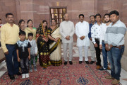 | Caption: | Shri Pankaj Kovind and his family members meeting with the President of India, Shri Ram Nath Kovind and the First Lady, Smt. Savita Kovind, at Rashtrapati Bhavan on September 20, 2018. |