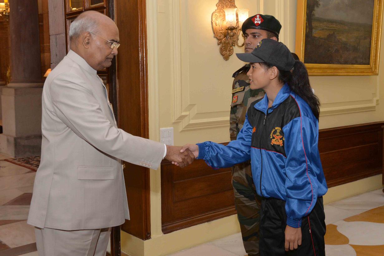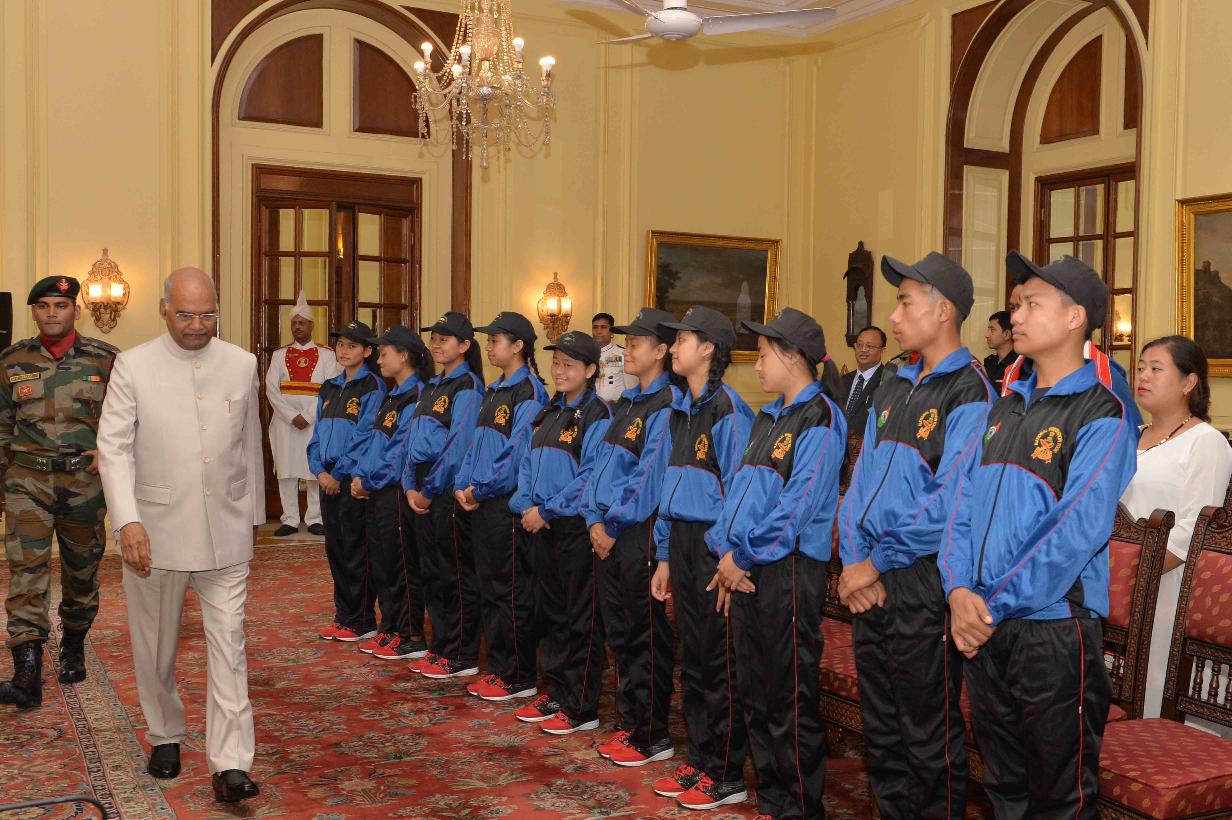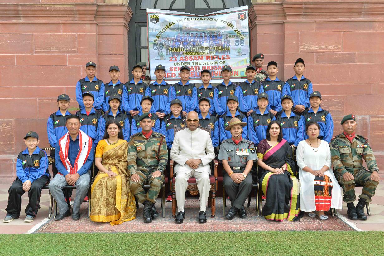 | Caption: | The President of India, Shri Ram Nath Kovind meeting with the students and teachers from Tamenglong, Manipur attending National Integration Tour (NIT), organised by the 23 Assam Rifles under the Aegis of HQ DG Assam Rifles, at Rashtrapati Bhavan on September 20, 2018. |