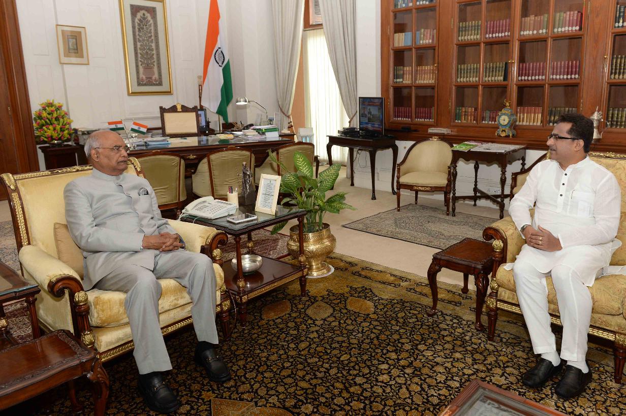 | Caption: | Shri Nitish Mishra, former Minister, Bihar Govt. and Sanyojak, BJP Niti Vishyak Shodh Vibhag, Bihar Pradesh meeting with the President of India, Shri Ram Nath Kovind, at Rashtrapati Bhavan on July 17, 2018. |