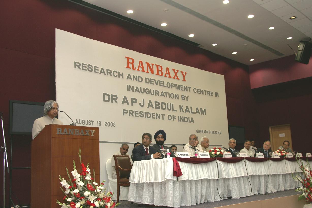 | Caption: | The President of India, Dr A P J Abdul Kalam inaugurating the Ranbaxy's New Research & Development Centre at Gurgaon in Haryana on Aug 16, 2005 |