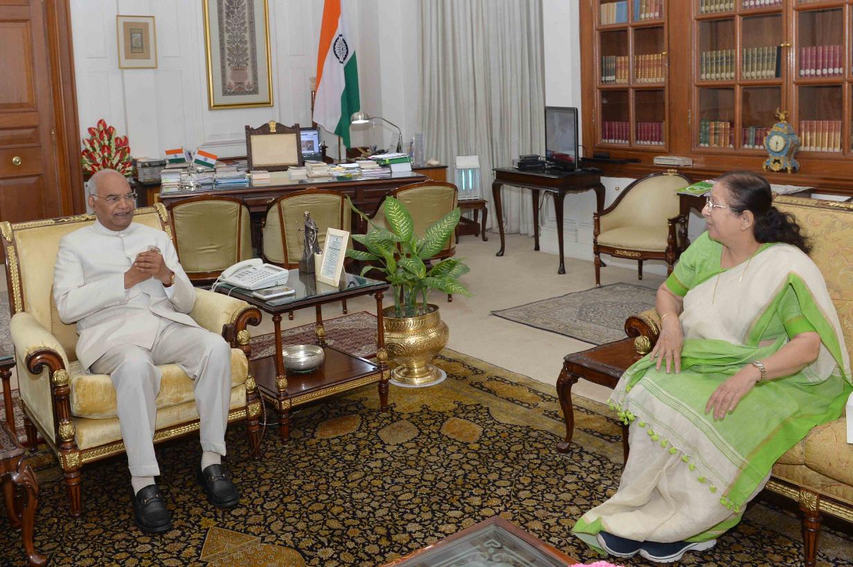 | Caption: | The Speaker, Lok Sabha, Smt. Sumitra Mahajan calling on the President of India, Shri Ram Nath Kovind, at Rashtrapati Bhavan on July 18, 2018. |