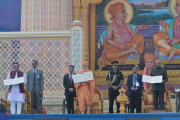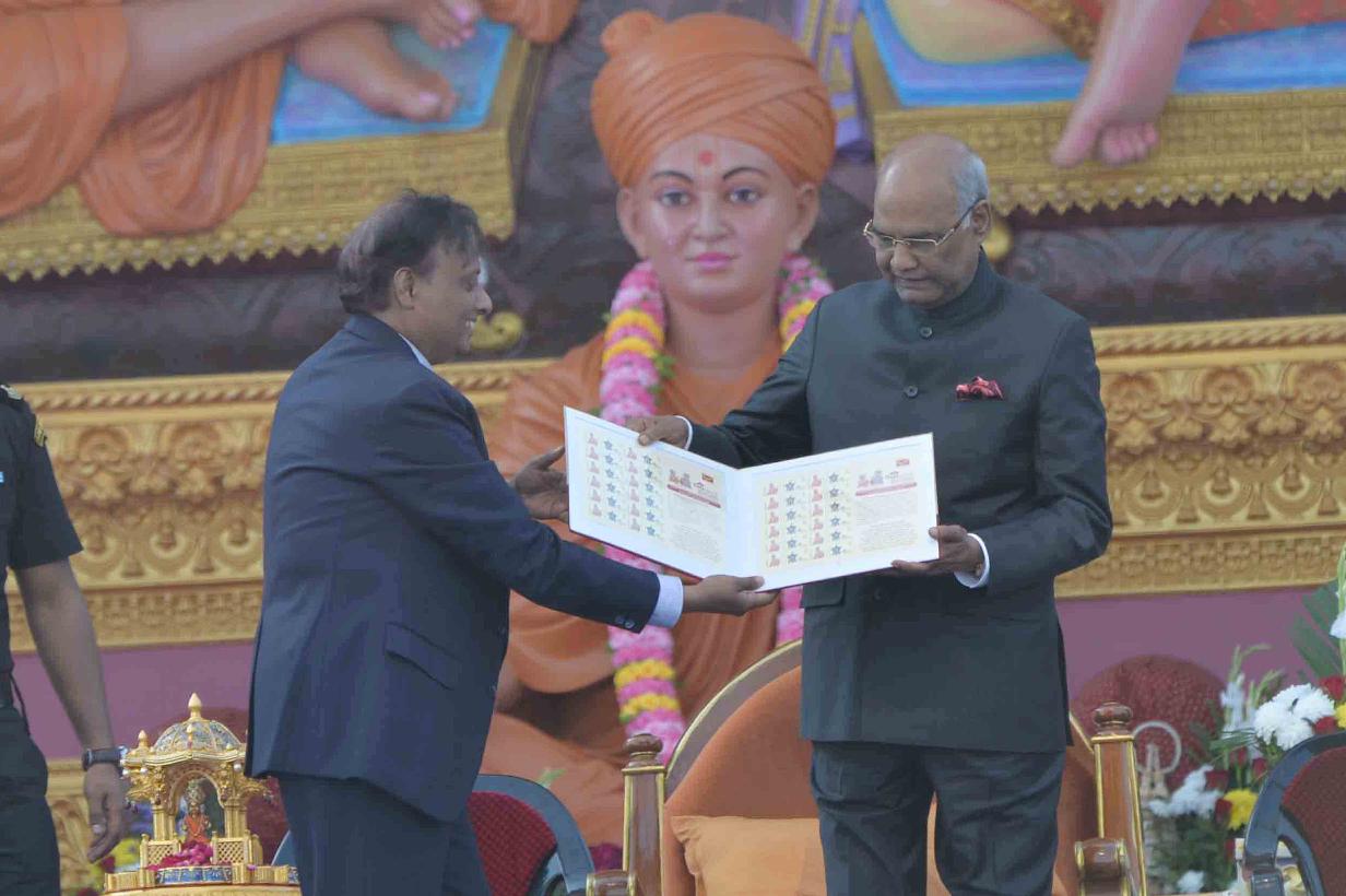 | Caption: | The President of India, Shri Ram Nath Kovind releasing the Postage Stamp on Akshar Deri, at the 150th Anniversary Celebrations of Akshar Deri, at Gondal, in Gujarat on January 22, 2018. |