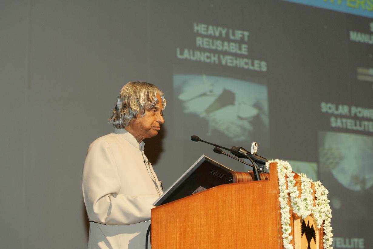 | Caption: | The President of India, Dr A P J Abdul Kalam delivering the JRD Tata Memorial Lecture at NIAS Campus at Bangalore in Karnataka on Aug 20, 2005 |