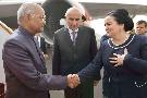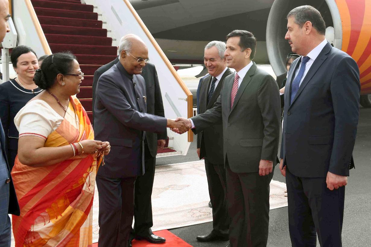 | Caption: | The President of India, Shri Ram Nath Kovind and First Lady, Smt. Savita Kovind being received by the Deputy Prime Minister of Tajikistan, H.E. Mr. Zokirzoda Mahmadtoir Zoir on their arrival, at Dushanbe International Airport, in Tajikistan on October 07, 2018. |