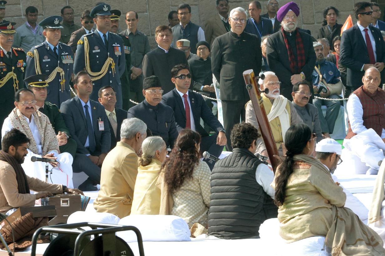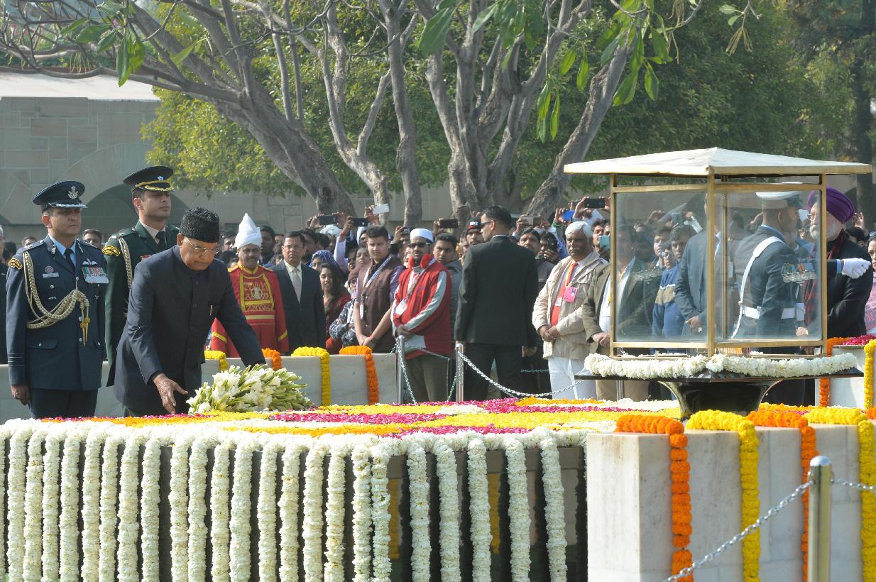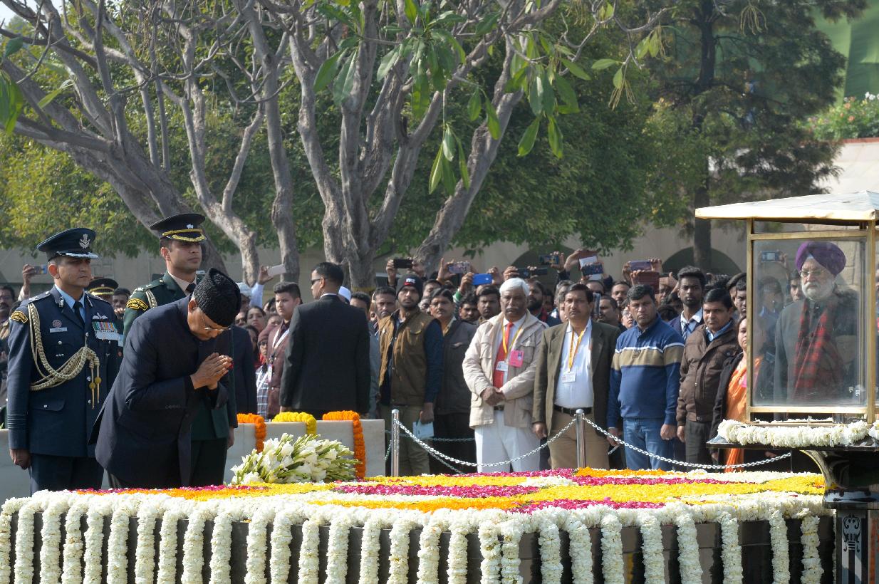 | Caption: | The President of India, Shri Ram Nath Kovind paying tributes to Mahatma Gandhi on Martyrs Day, at Rajghat, in New Delhi on January 30, 2020. |