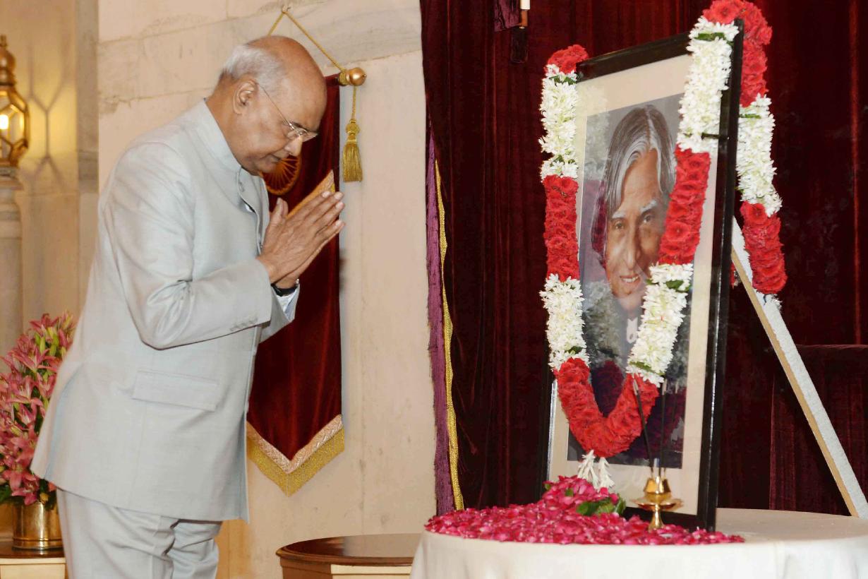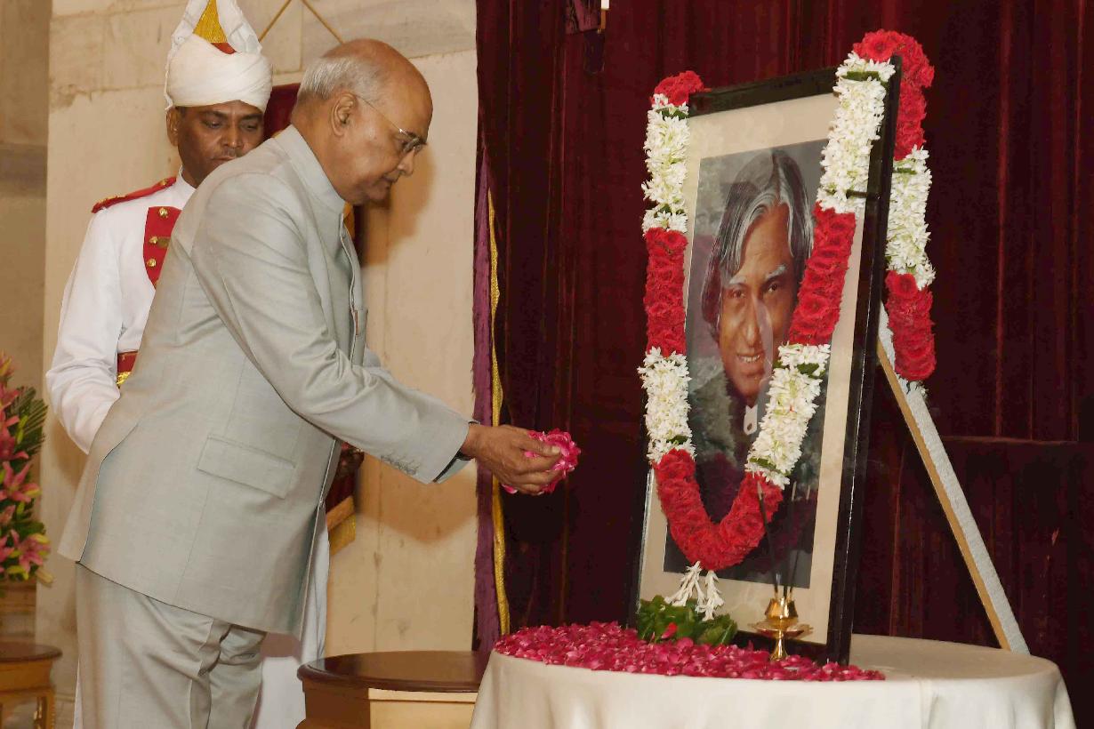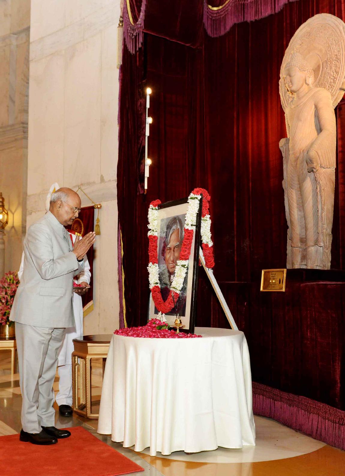 | Caption: | The President of India, Shri Ram Nath Kovind paying floral tributes to Dr. APJ Abdul Kalam, former President of India on his Birth Anniversary, at Rashtrapati Bhavan on October 15, 2018. |