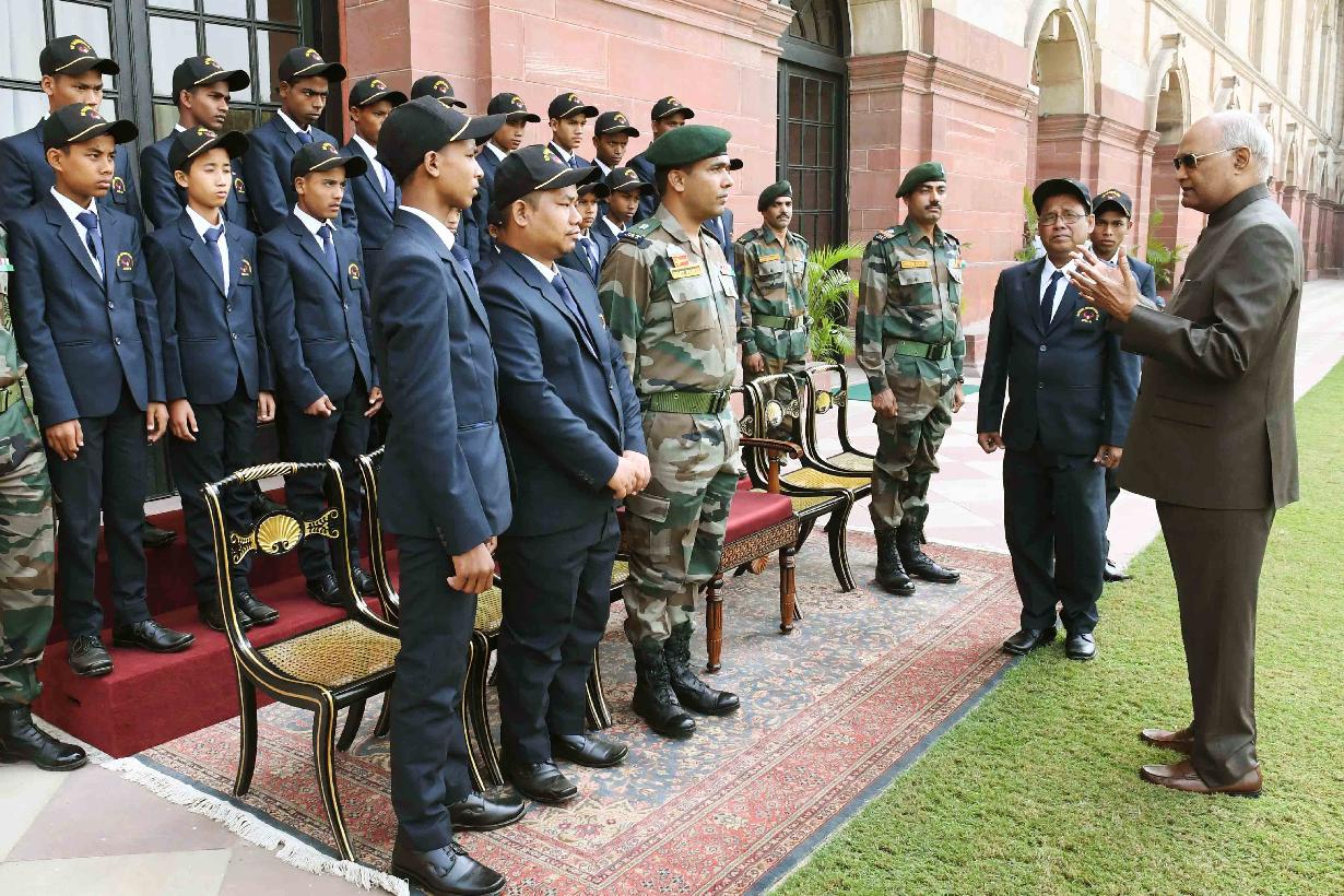 | Caption: | The President of India, Shri Ram Nath Kovind meeting with the students and teachers from Baksa & Barpeta district of Assam attending National Integration Tour, organized by 15 JAT/HQ 21 Mtn Div/ HQ 4 Corps of Eastern Command, at Rashtrapati Bhavan on October 16, 2018. |