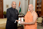 | Caption: | Swami Bharat Bhushan of Mokshayatan Yog Sansthan, Saharanpur along with Acharya Pratishtha and Shri Dheeraj Saraswat meeting with the President of India, Shri Ram Nath Kovind, at Rashtrapati Bhavan on October 18, 2018. |