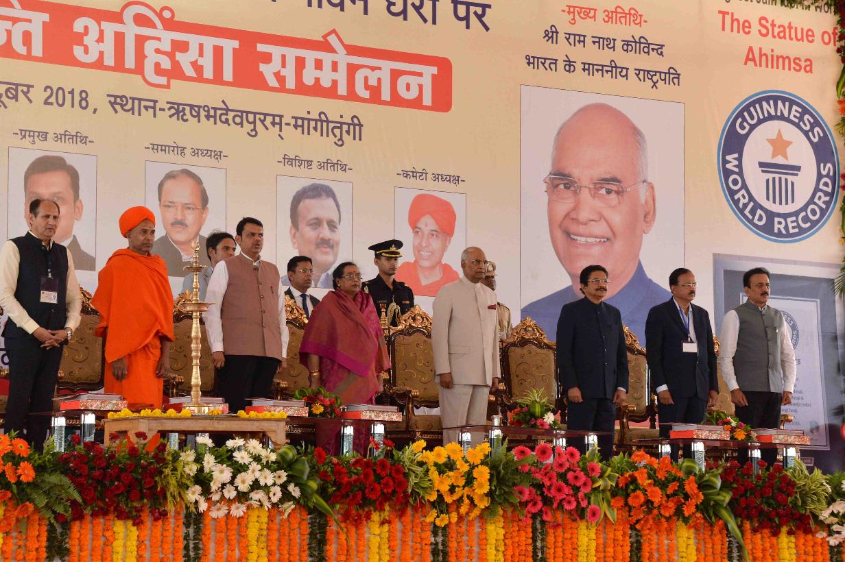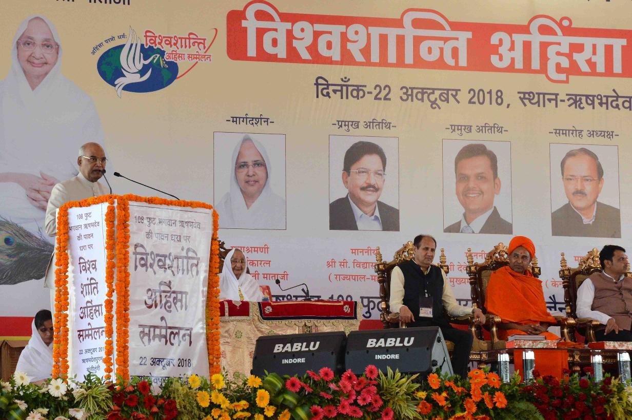 | Caption: | The President of India, Shri Ram Nath Kovind inaugurating the Vishwashanti Ahimsa Sammelan, at Mangi Tungi, Nashik, in Maharashtra on October 22, 2018. |