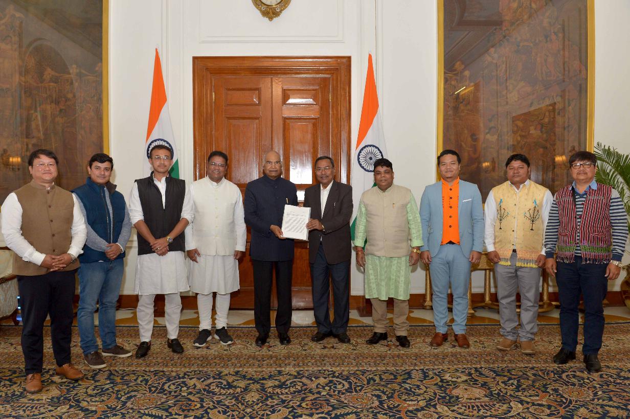 | Caption: | Shri Ripun Bora, MP (Rajya Sabha) along with hill leaders of Assam meeting with the President of India, Shri Ram Nath Kovind, at Rashtrapati Bhavan on February 10, 2020. |