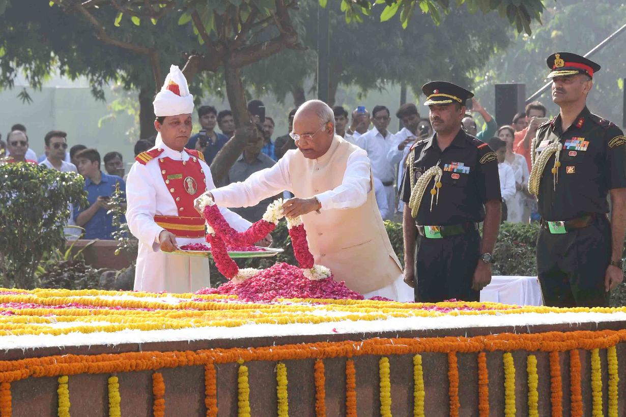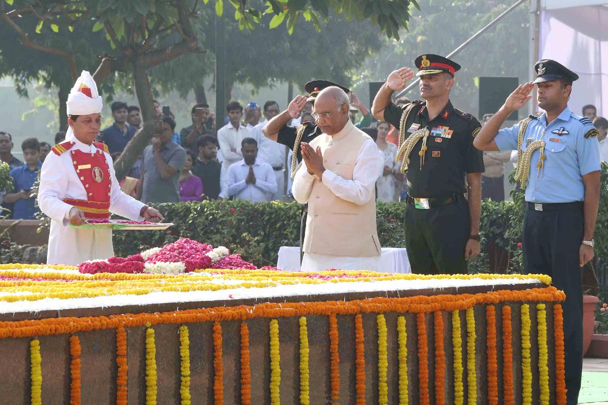 | Caption: | The President of India, Shri Ram Nath Kovind paying floral tributes at the Samadhi of late Shri Lal Bahadur Shastri, former Prime Minister of India, on his 114th Birth Anniversary, at Vijay Ghat, in New Delhi on October 02, 2018. |