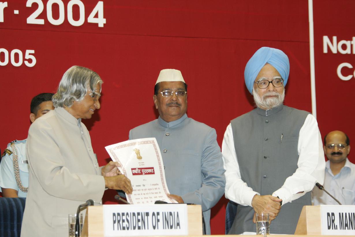 | Caption: | The President of India, Dr A P J Abdul Kalam presenting the Kabir Puraskar and Communal Harmony Awards for 2004 at Vigyan Bhavan in New Delhi on Aug 02, 2005 |