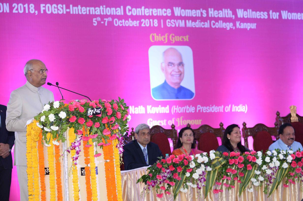 | Caption: | The President of India, Shri Ram Nath Kovind gracing the International Conference on Women s Health, Wellness and Empowerment organised by the Federation of Obstetric and Gynaecological Societies of India and the Kanpur Obstetric and Gynaecological Society, at Kanpur, in Uttar Pradesh on October 06, 2018. |