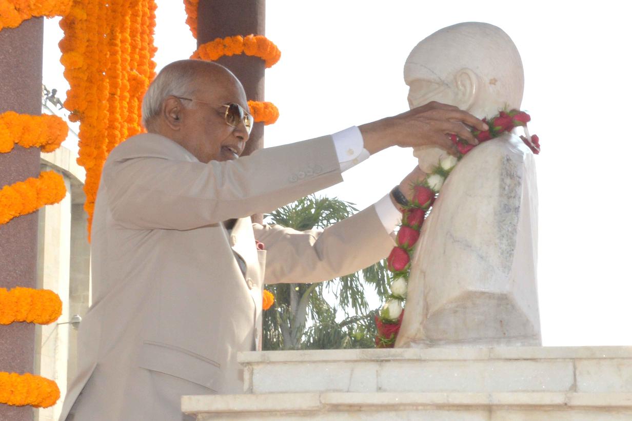 | Caption: | The President of India, Shri Ram Nath Kovind garlanding the statue of Late Shri Ganesh Shankar Vidyarthi, at Kanpur, in Uttar Pradesh on October 06, 2018. |