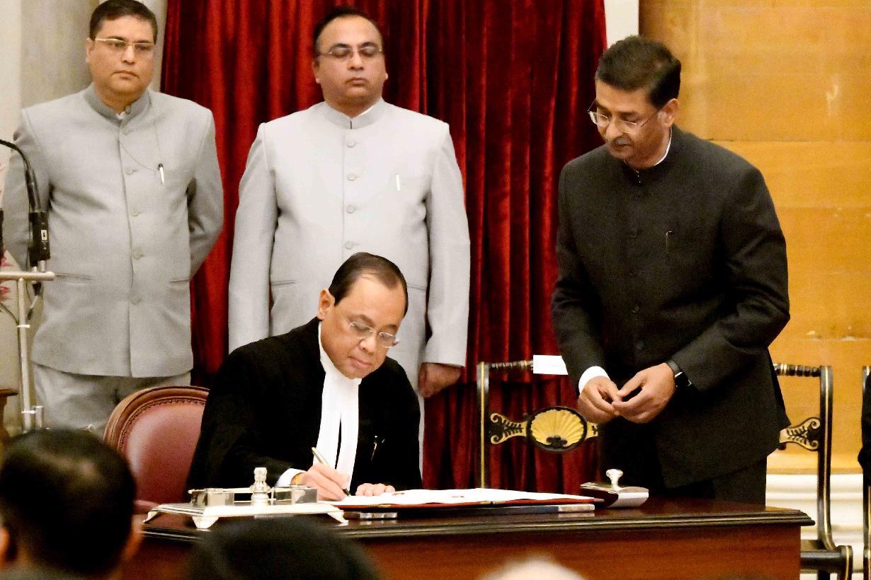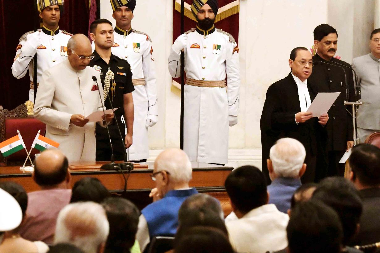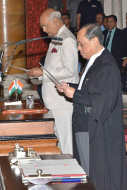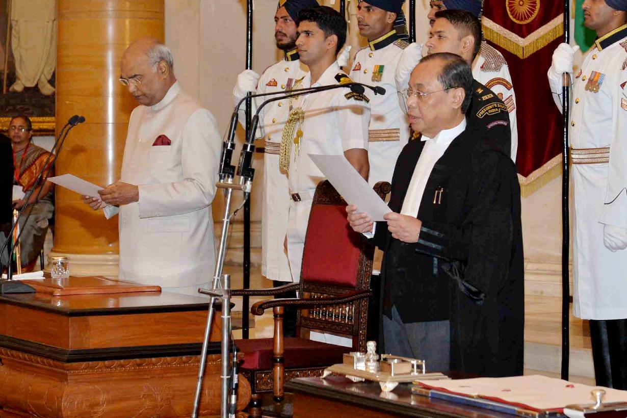 | Caption: | The President of India, Shri Ram Nath Kovind administering the oath of office to Shri Justice Ranjan Gogoi as the Chief Justice of the Supreme Court of India, at a Swearing-in-Ceremony, at Rashtrapati Bhavan on October 03, 2018. |