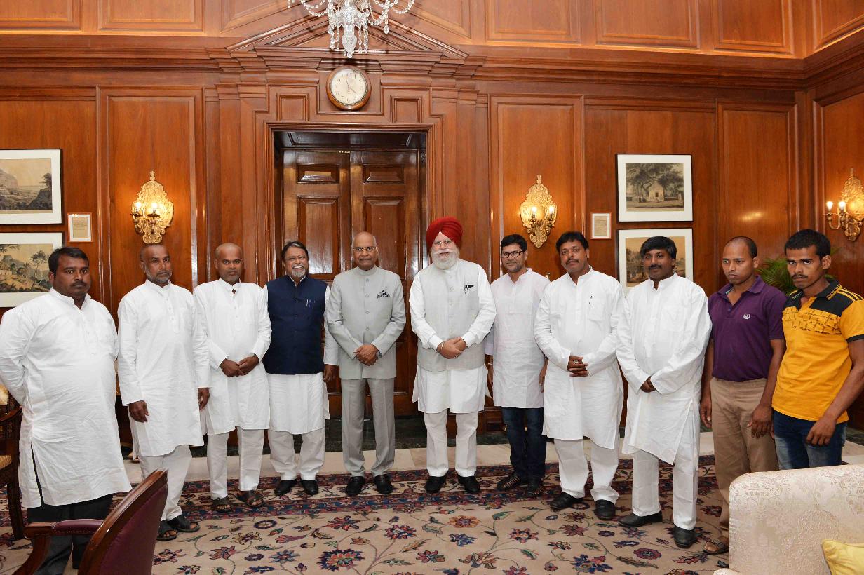 | Caption: | The Minister of State for Electronics and Information Technology, Shri S.S. Ahluwalia alongwith Shri Mukul Roy and others from West Bengal meeting with the President of India, Shri Ram Nath Kovind, at Rashtrapati Bhavan on October 01, 2018. |