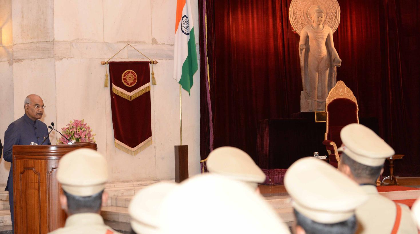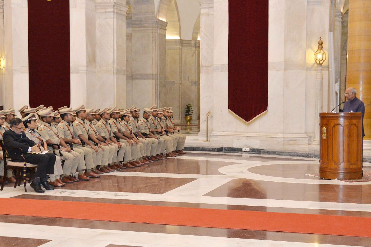 | Caption: | The President of India, Shri Ram Nath Kovind meeting with the Probationers of the 70 RR (2017 Batch) of Indian Police Service from Sardar Vallabhbhai Patel National Police Academy, at Rashtrapati Bhavan on October 12, 2018. |