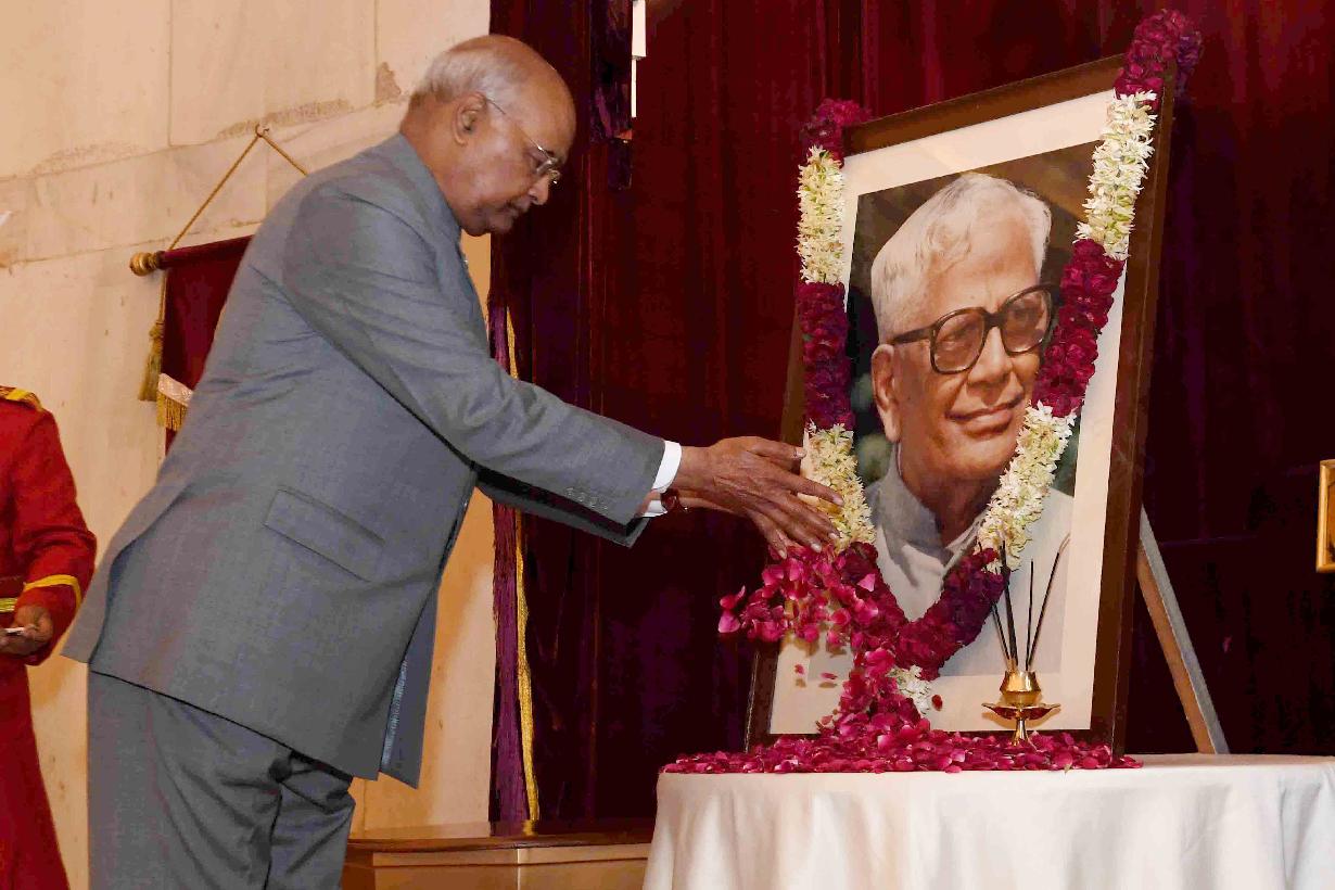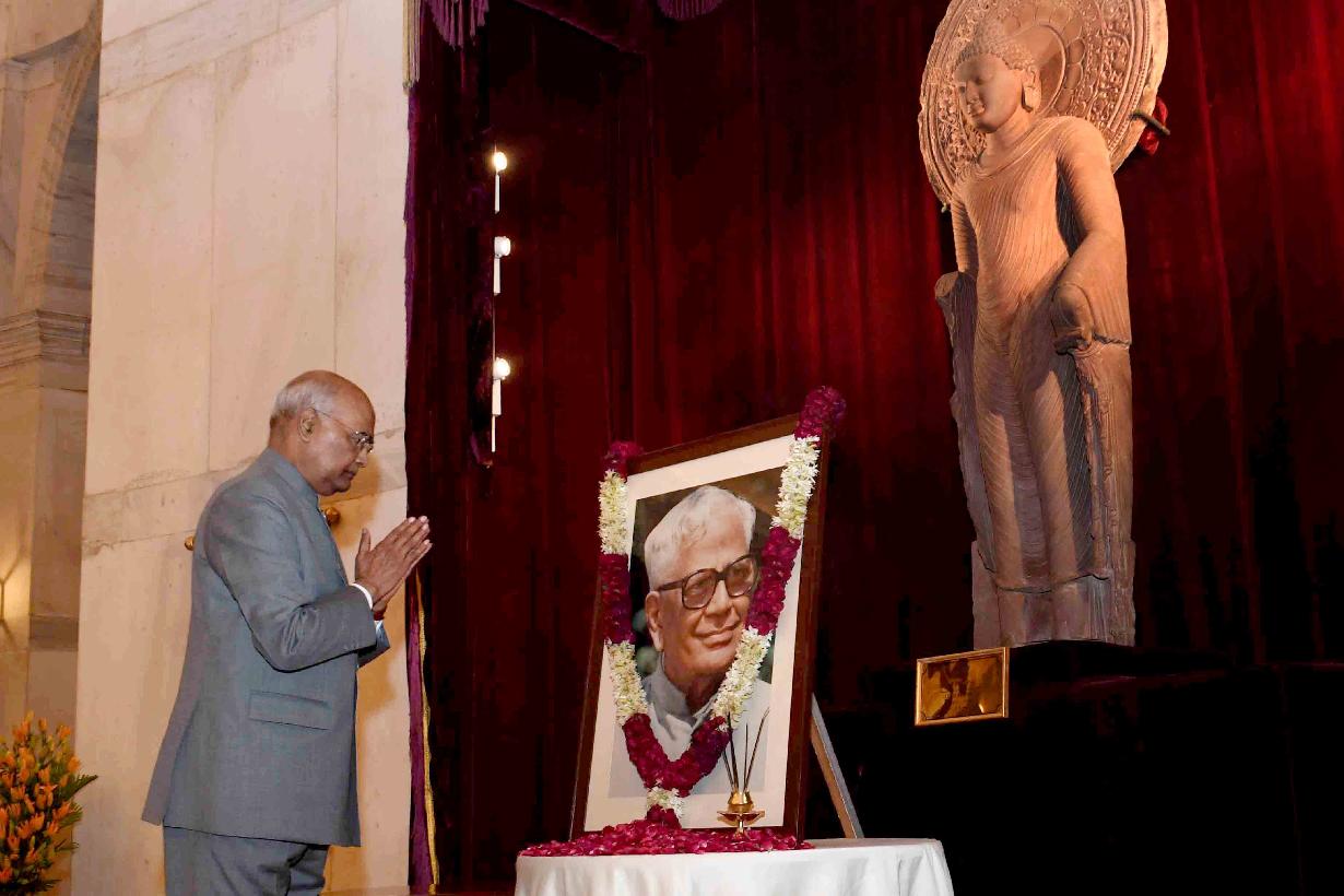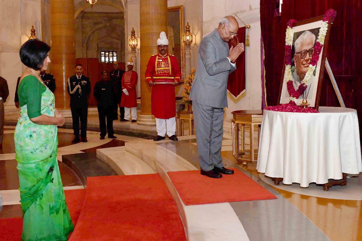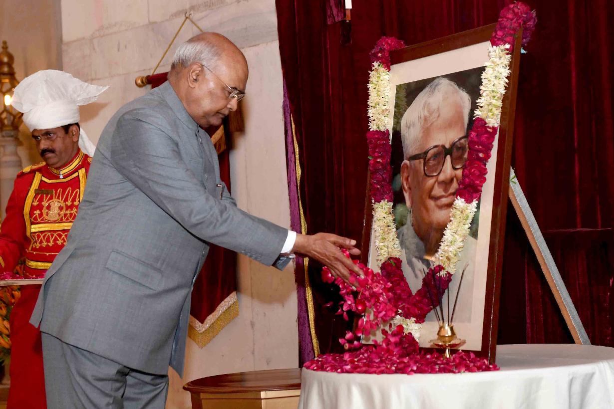 | Caption: | The President of India, Shri Ram Nath Kovind paying floral tributes to the former President of India, Shri R. Venkataraman on his birth anniversary, at Rashtrapati Bhavan on December 04, 2018. |