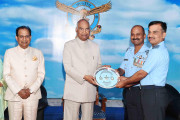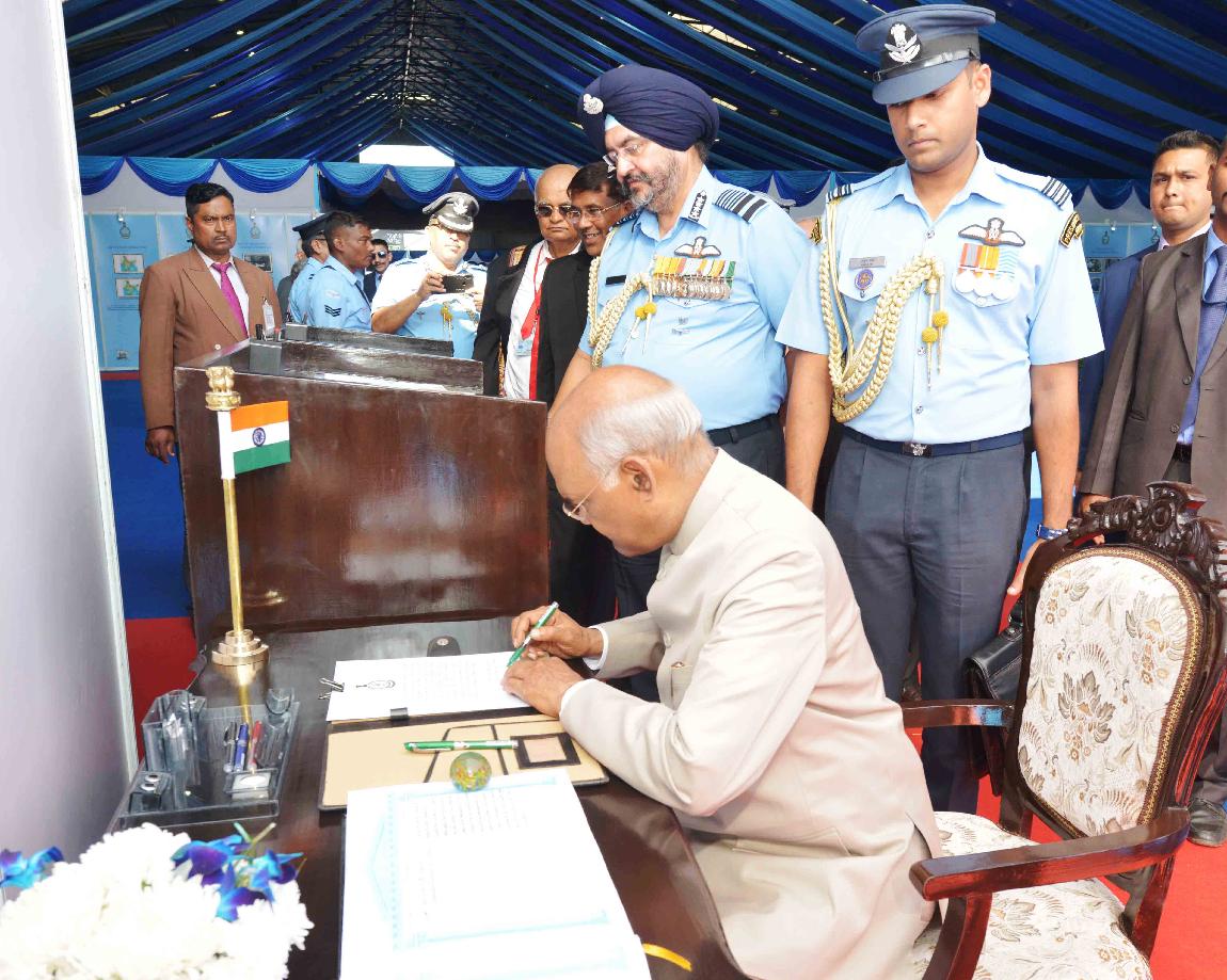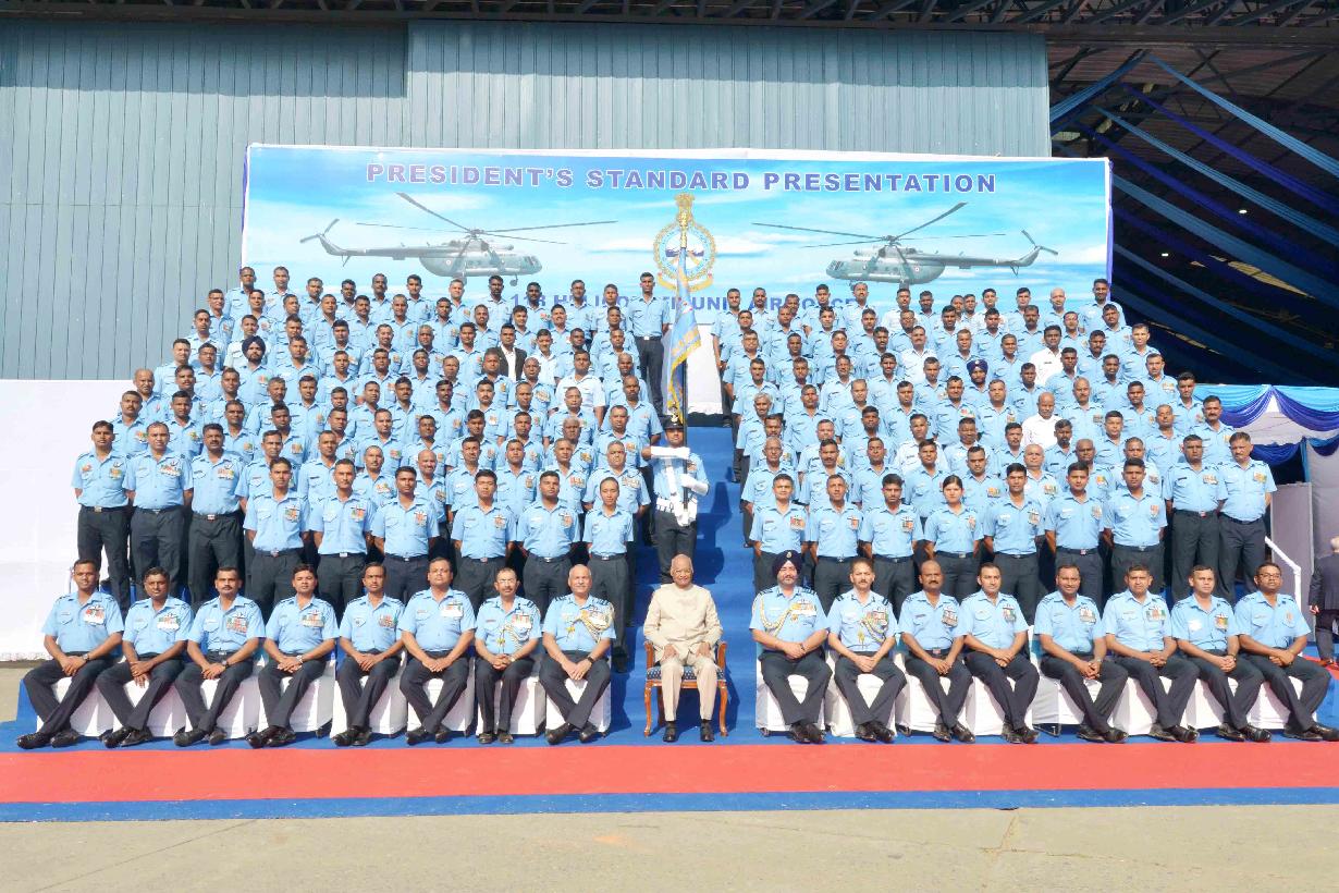 | Caption: | The President of India, Shri Ram Nath Kovind during the presentation of Standards to 118 Helicopter Unit and 'Colours' to Air Defence College, at Air Force Station Guwahati, in Assam on November 29, 2018. |