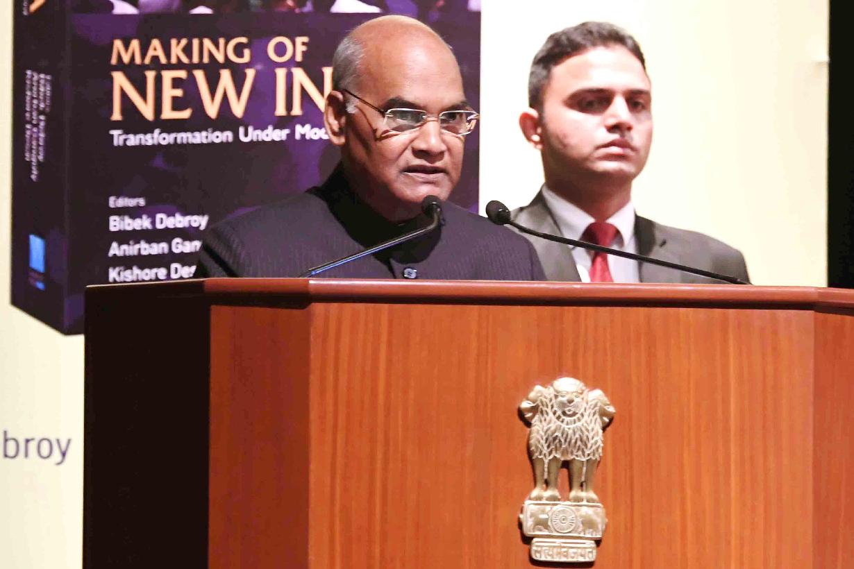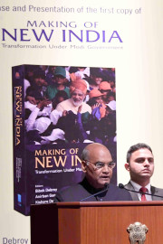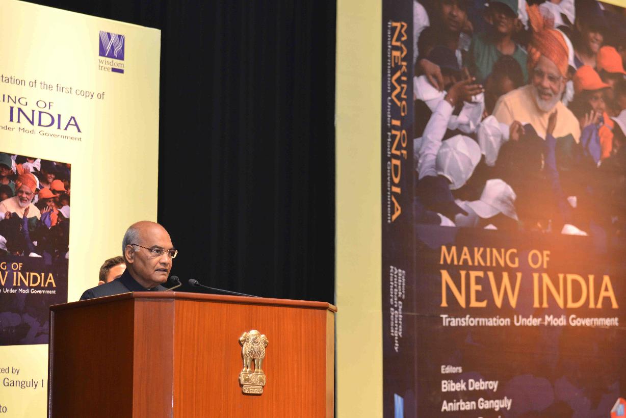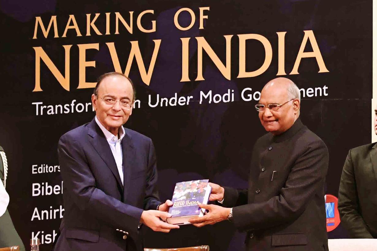 | Caption: | The President of India, Shri Ram Nath Kovind receiving the first copy of the book "Making of New India: Transformation under Modi Government" from the Union Minister for Finance and Corporate Affairs, Shri Arun Jaitley, at Rashtrapati Bhavan Cultural Centre on November 27, 2018. |