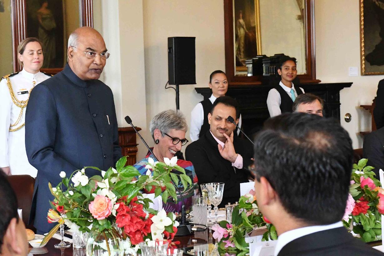 | Caption: | The President of India, Shri Ram Nath Kovind addressing the luncheon banquet, hosted in his honour by the Governor of Victoria, H.E. Ms. Linda Dessau, at Government House, Melbourne, in Australia on November 23, 2018. |