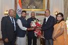 | Caption: | Shri Dhairyasheel Sambhajirao Mane, MP (Lok Sabha) along with Dr. P.D. Patil, Chancellor, Smt. Smita Jadhav, Trustee and Prof. N.J. Pawar, Vice Chancellor, D.Y. Patil University Kolhapur meeting with the President of India, Shri Ram Nath Kovind, at Rashtrapati Bhavan on February 10, 2020. |