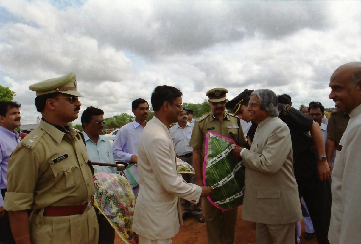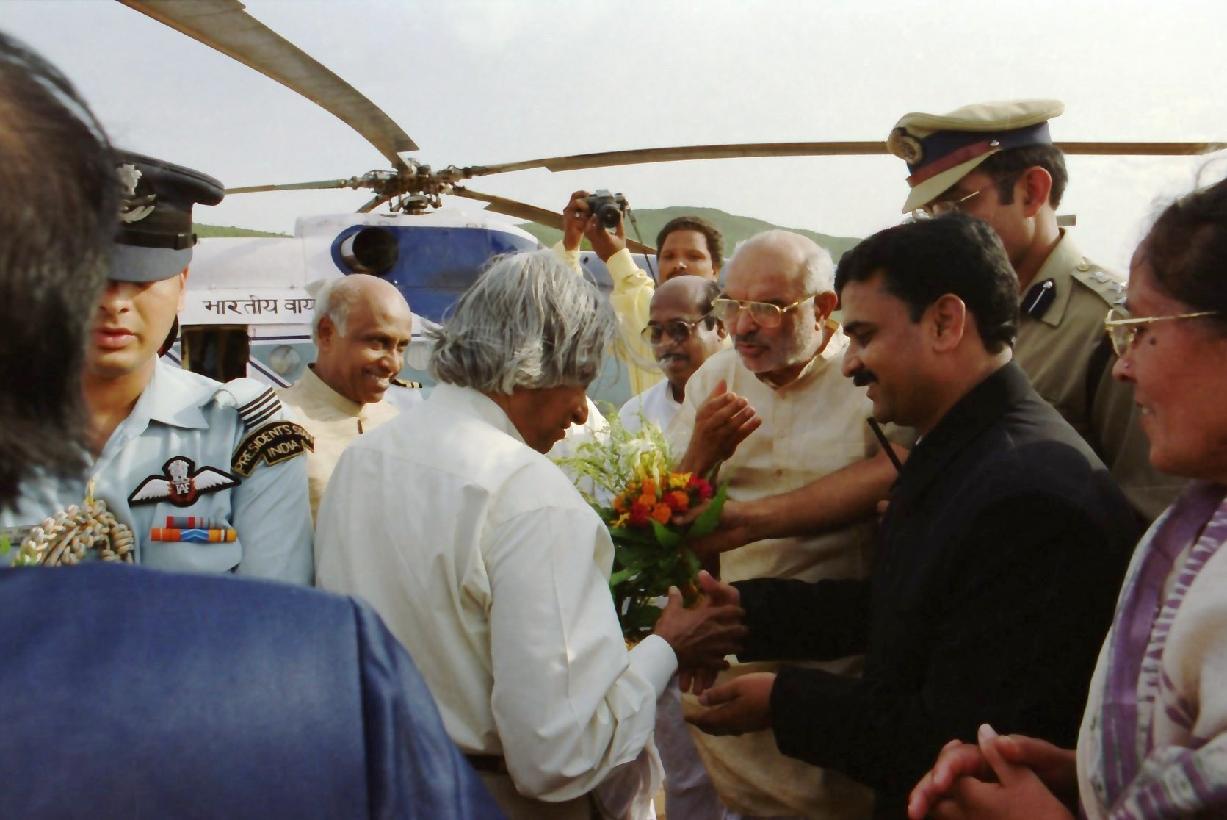 | Caption: | The President of India, Dr A P J Abdul Kalam arriving at Barepada Helipad at Bhubaneshwar in Orissa on May 14, 2003 |