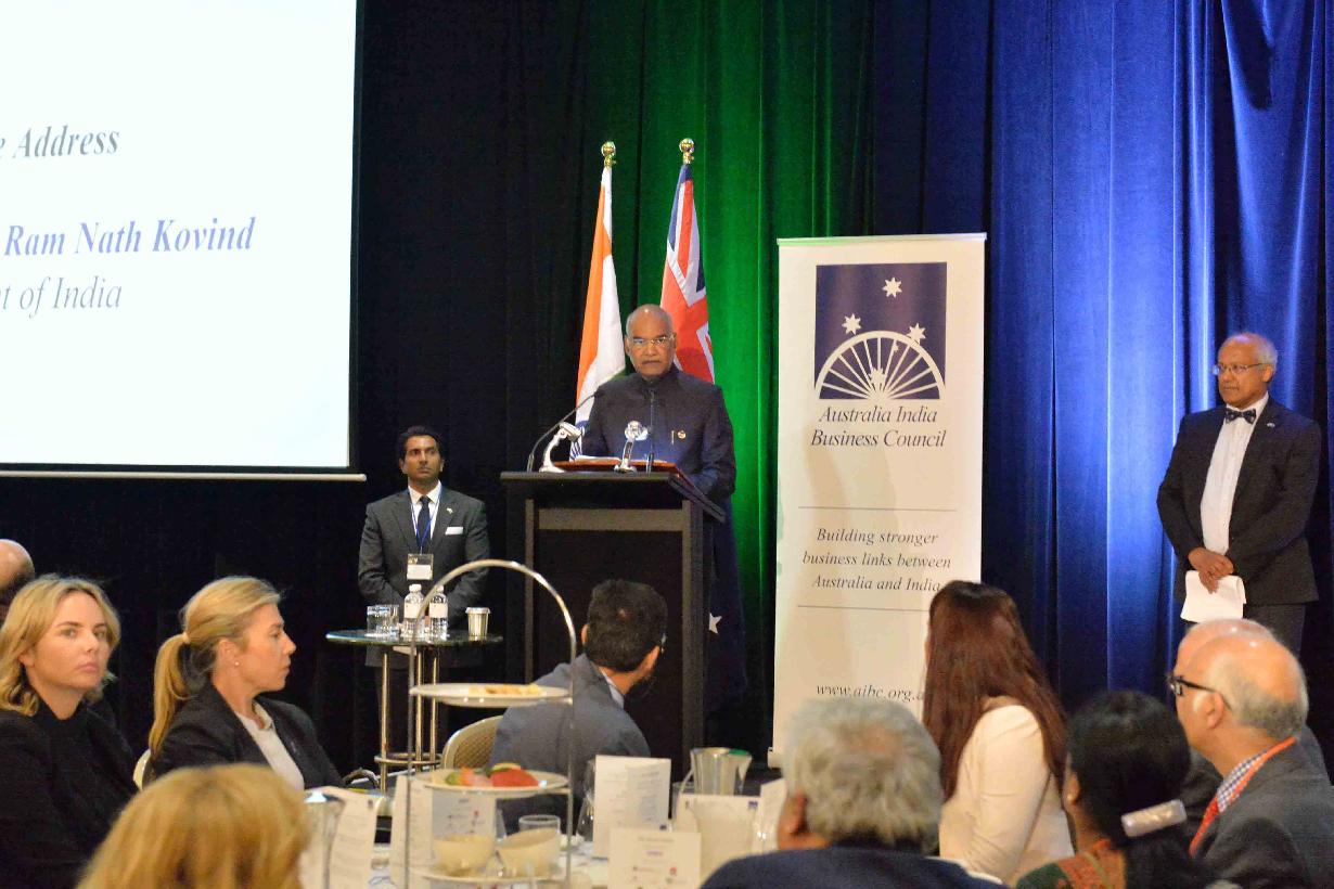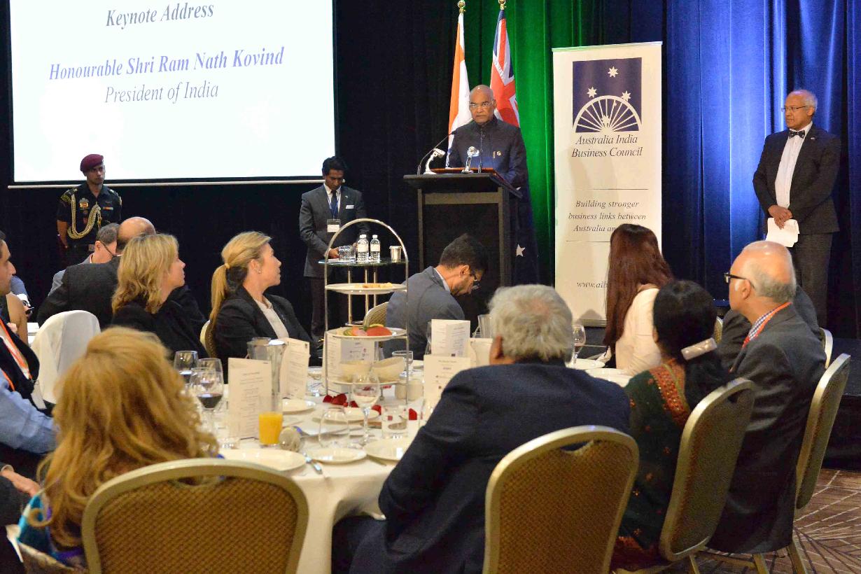 | Caption: | The President of India, Shri Ram Nath Kovind delivering the Keynote address at the Australia India Business Council, in Sydney on November 22, 2018. |