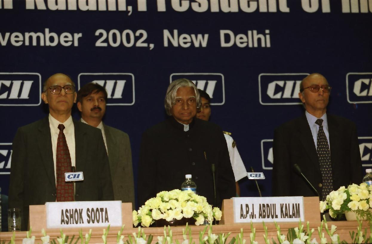 | Caption: | The President of India, Dr A P J Abdul Kalam at the "A Vision for India"-CII Function at Vigyan Bhavan in New Delhi on Nov 14, 2002 |