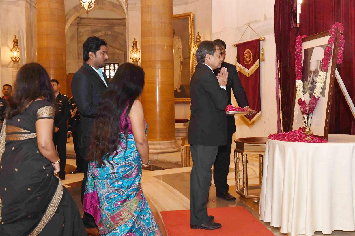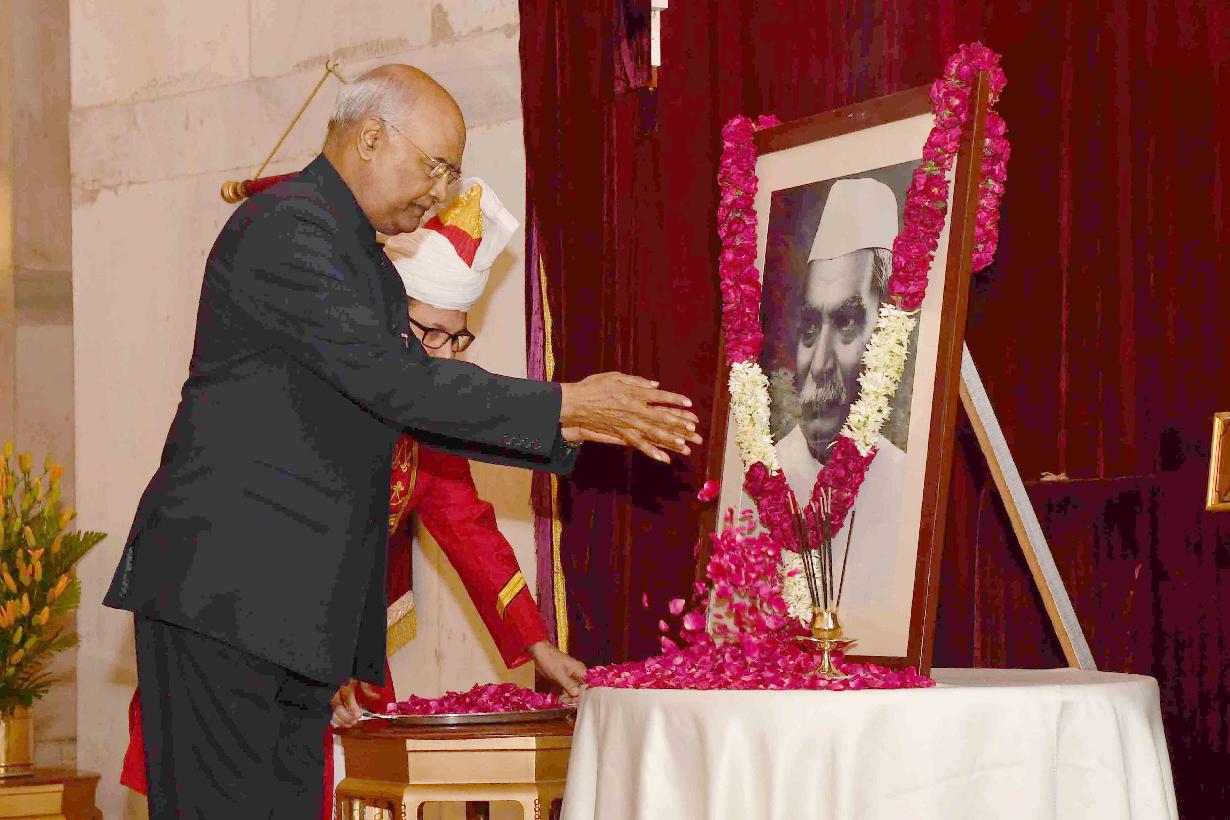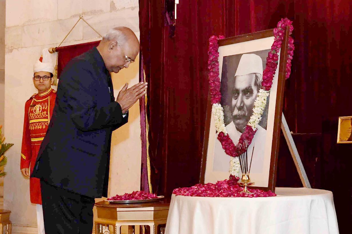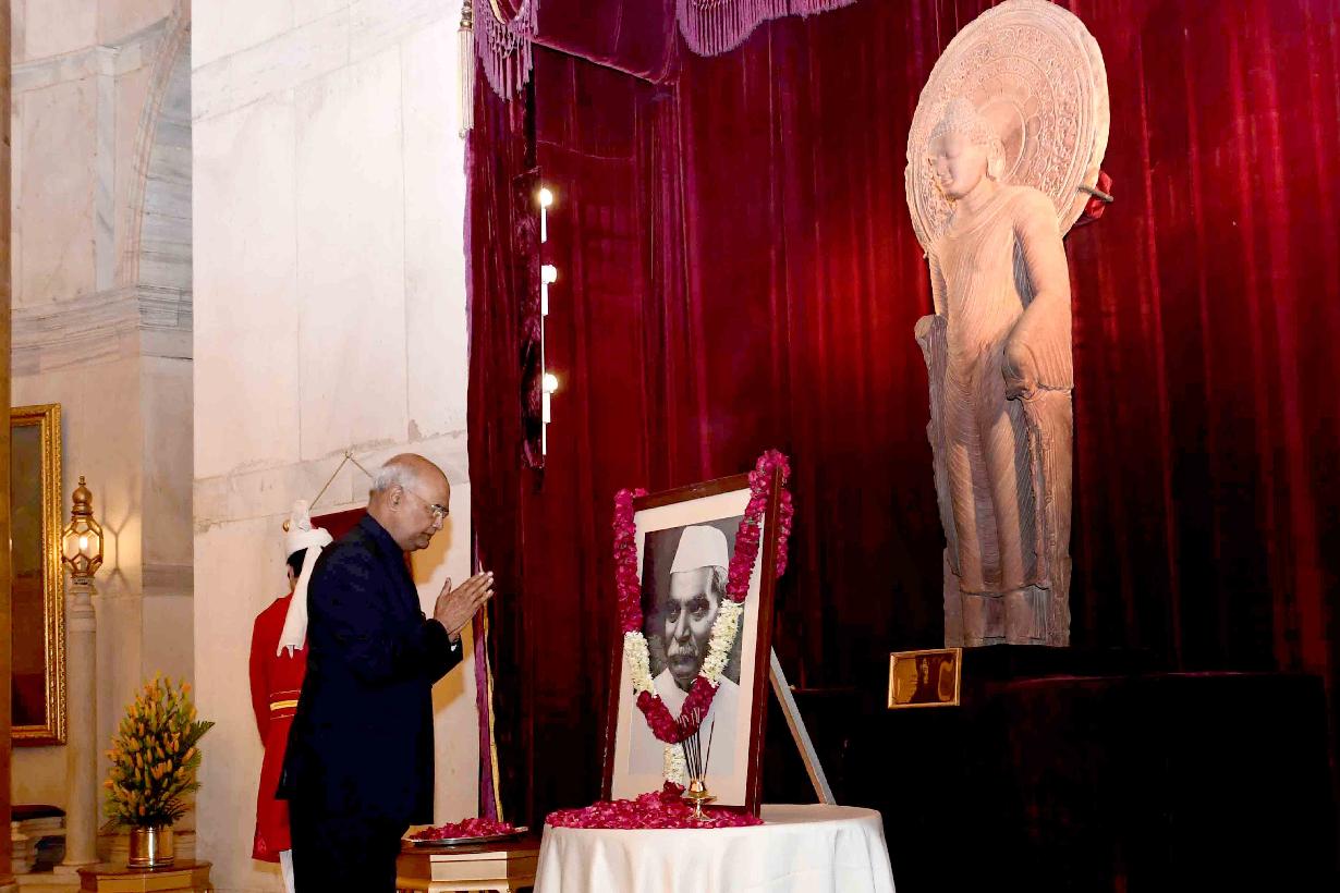 | Caption: | The President of India, Shri Ram Nath Kovind and the First Lady, Smt. Savita Kovind paying floral tributes to the first President of India, Dr. Rajendra Prasad on his birth anniversary, at Rashtrapati Bhavan on December 03, 2018. Family members of Dr. Rajendra Prasad also paid tributes to him on the occasion. |