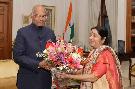 | Caption: | The Minister of External Affairs, Smt. Sushma Swaraj calling on the President of India, Shri Ram Nath Kovind, at Rashtrapati Bhavan on January 30, 2018. |