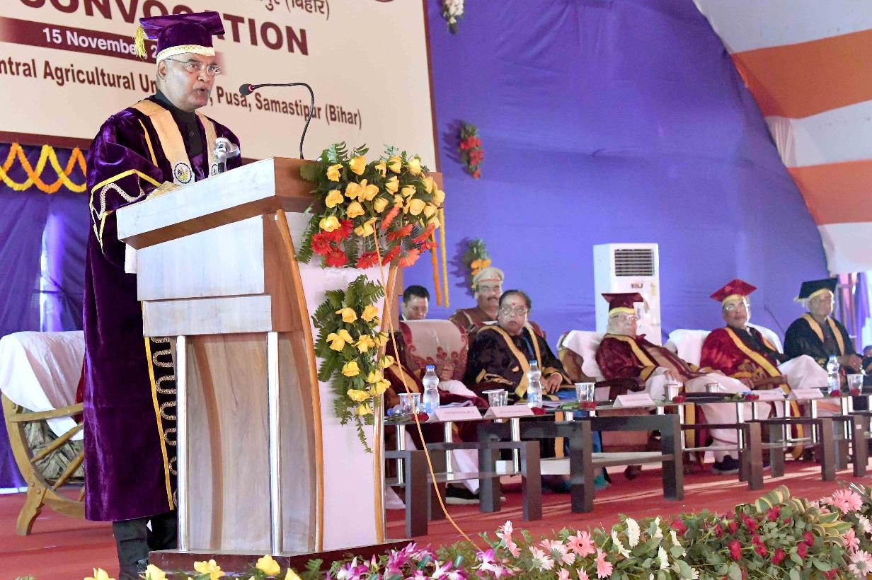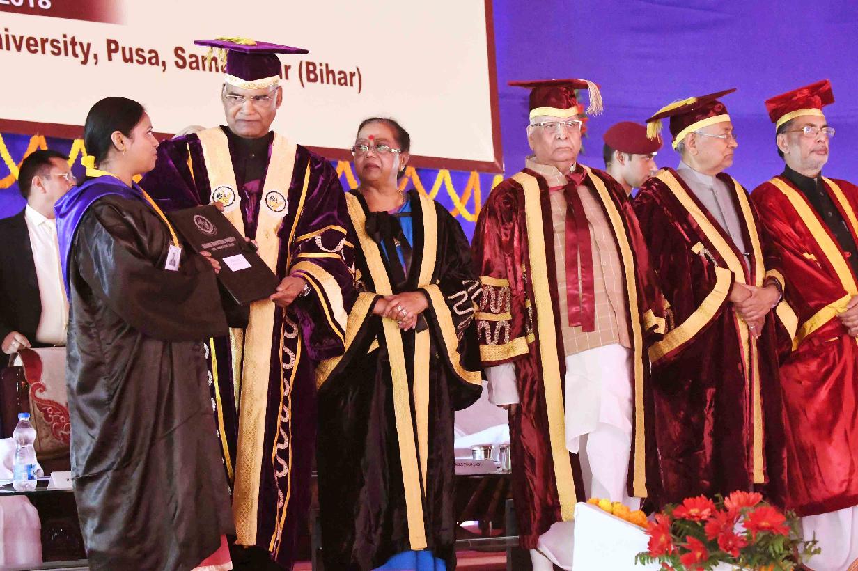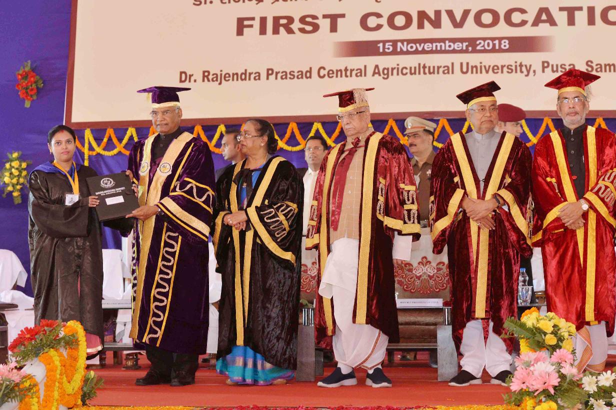 | Caption: | The President of India, Shri Ram Nath Kovind gracing the first Convocation of Dr. Rajendra Prasad Central Agricultural University, Pusa and presenting Gold Medals to the students, at Samastipur, in Bihar on November 15, 2018. |