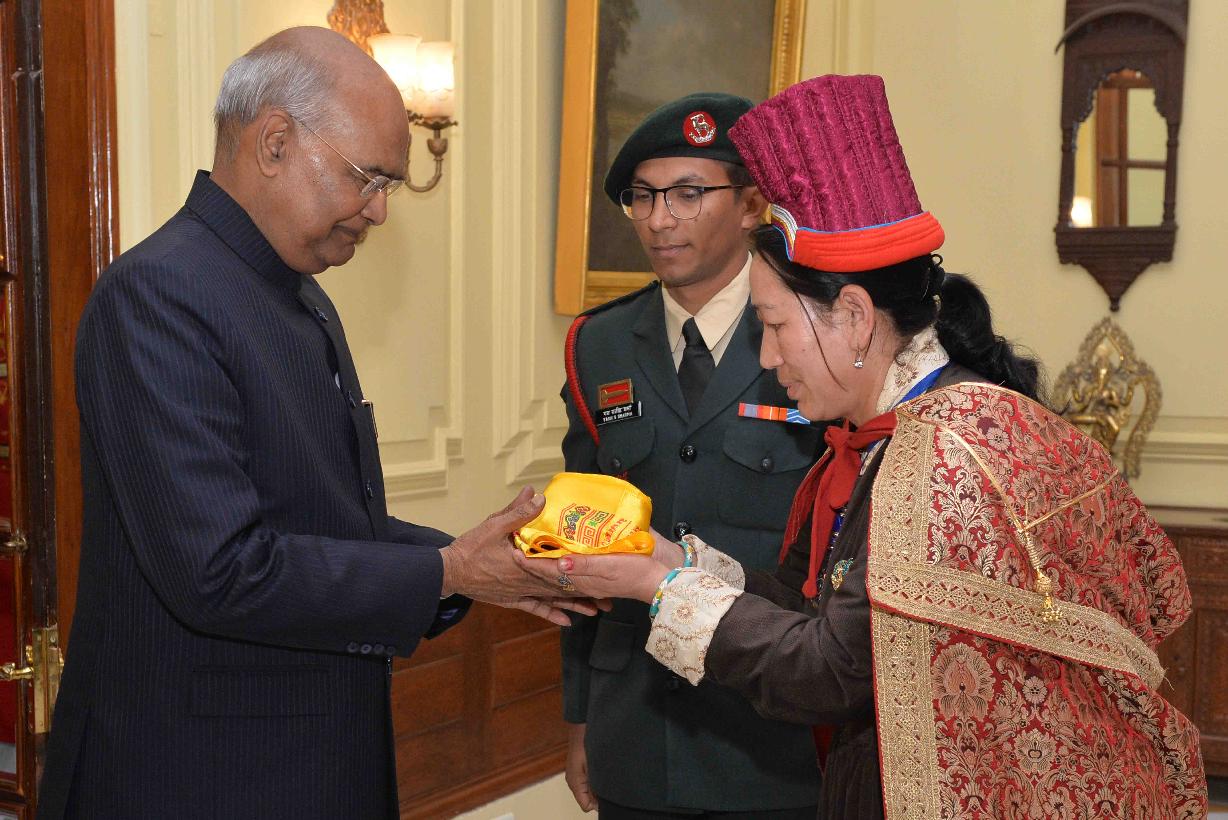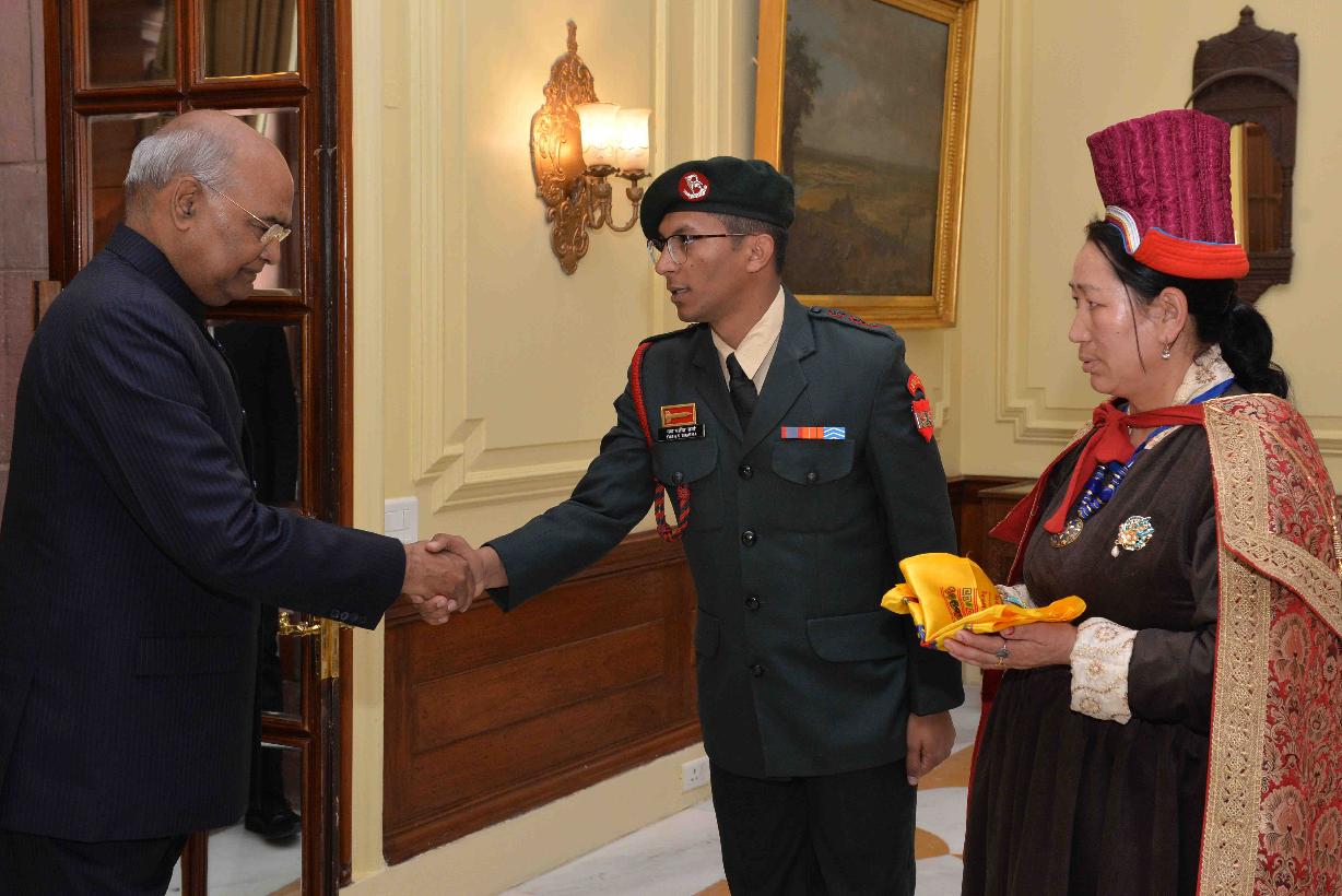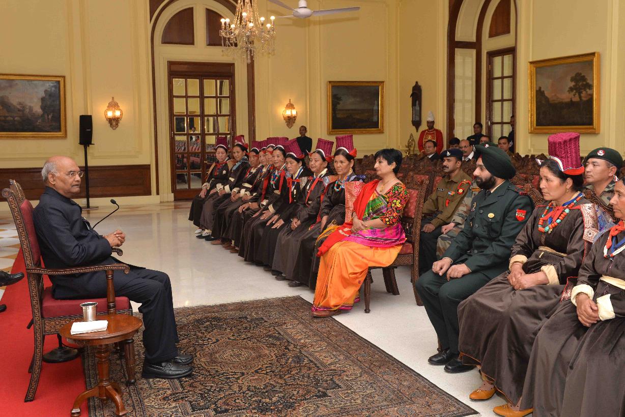 | Caption: | The President of India, Shri Ram Nath Kovind meeting with Veer Naris (widows of war veterans) from Eastern Ladakh attending Capacity Building Tours, organised by the HQ 14 Corps, at Rashtrapati Bhavan on November 27, 2018. |