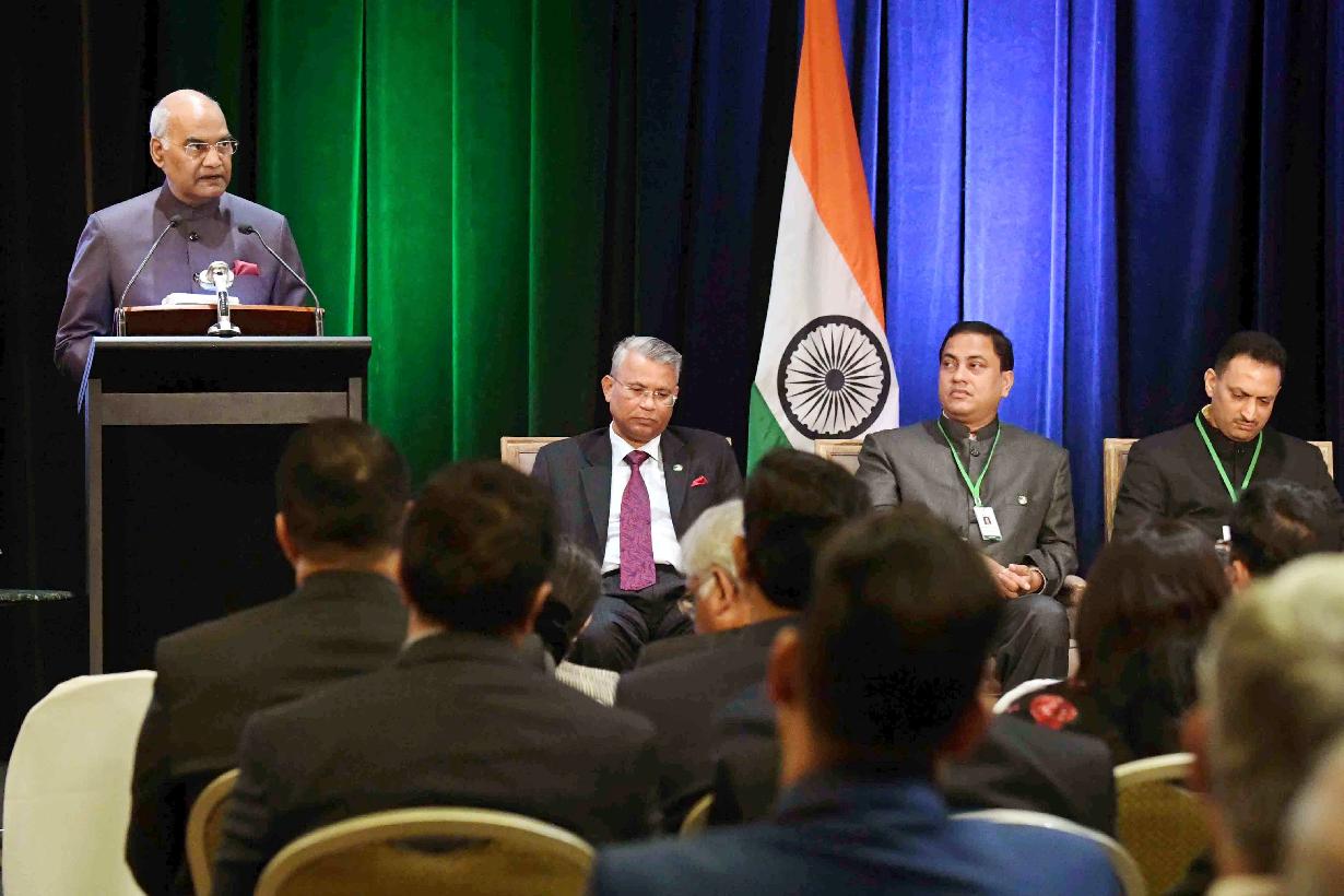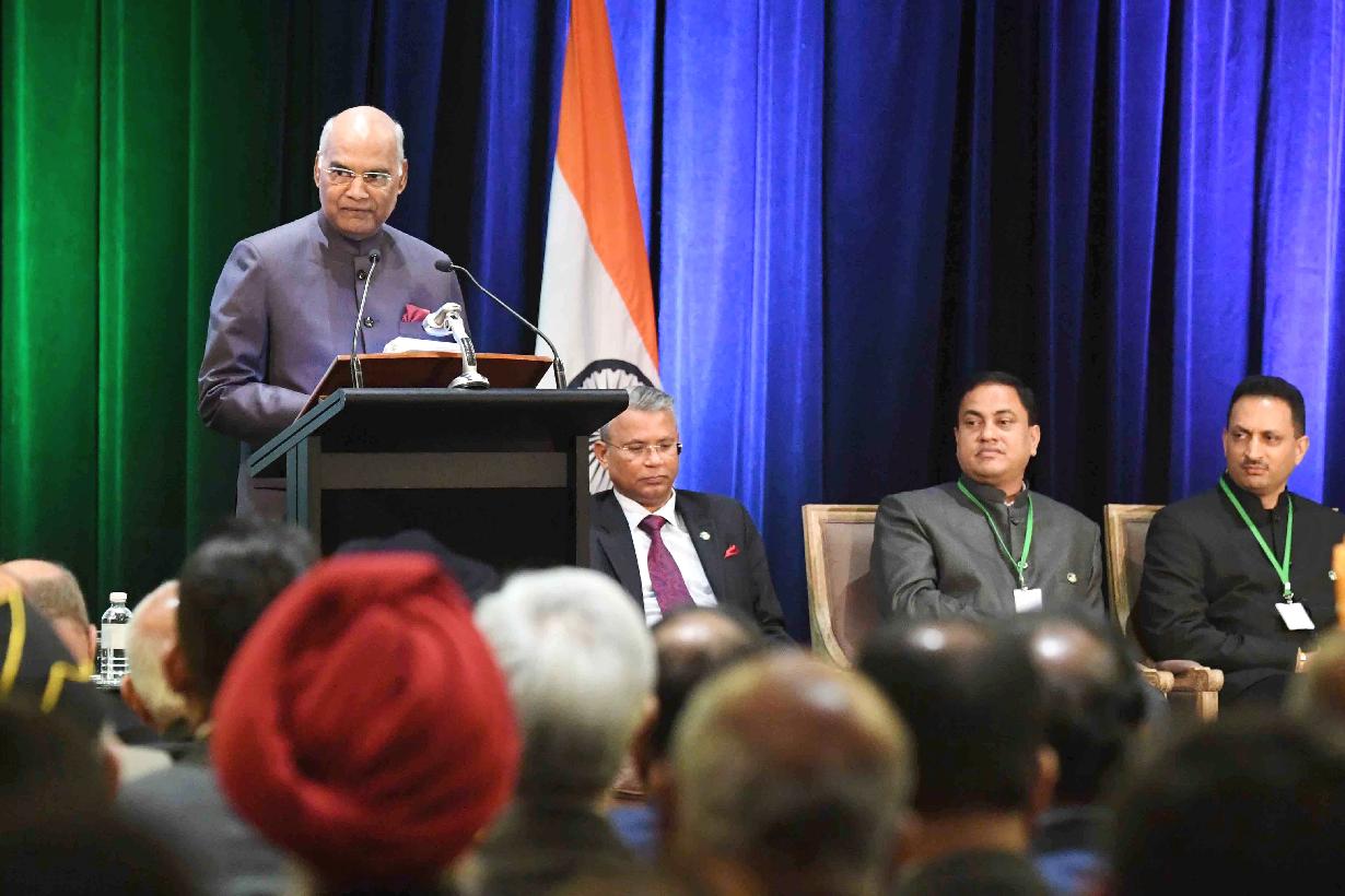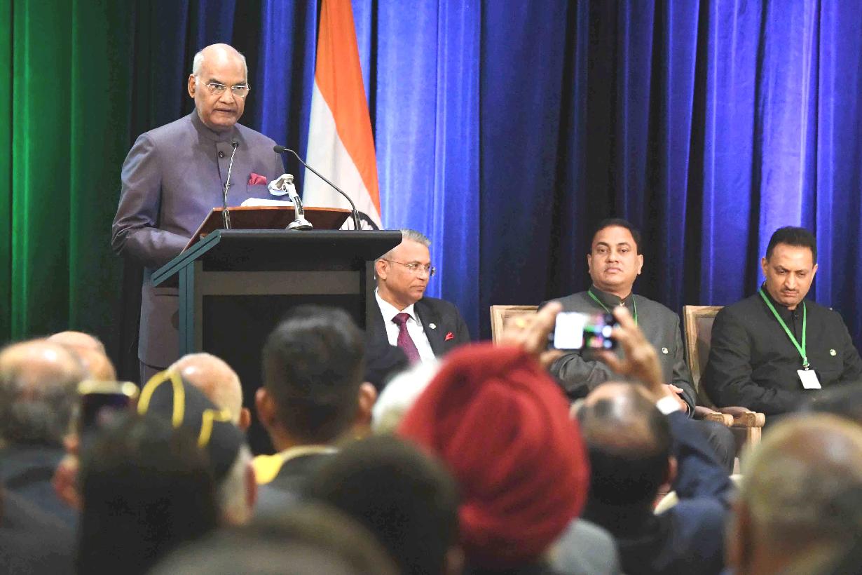 | Caption: | The President of India, Shri Ram Nath Kovind addressing the Indian Community, at the Reception hosted by the High Commissioner of India to Australia, Dr. Ajay M. Gondane, in Sydney on November 21, 2018. |